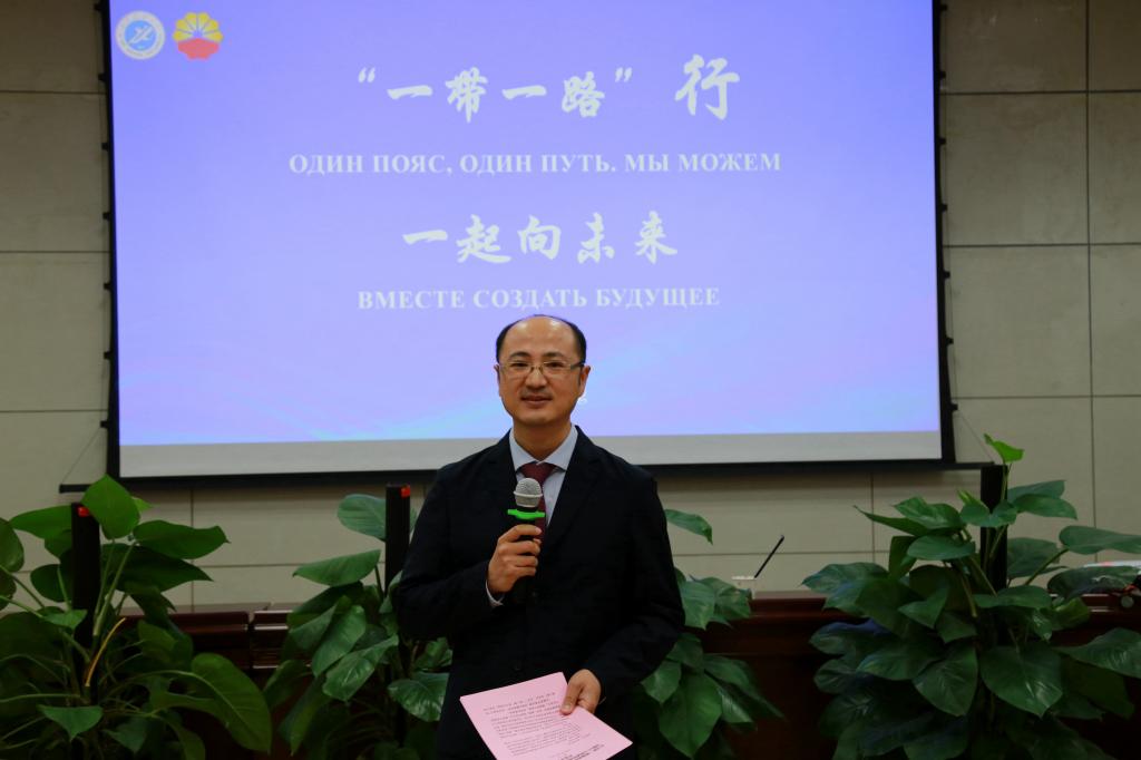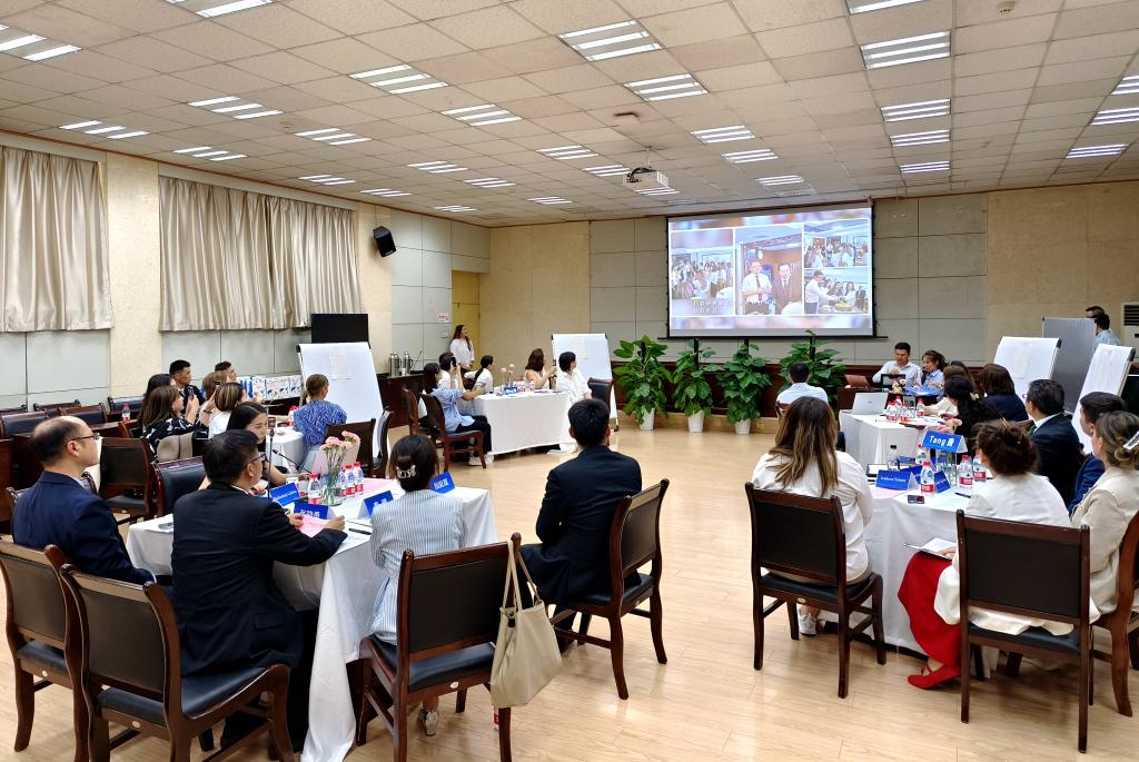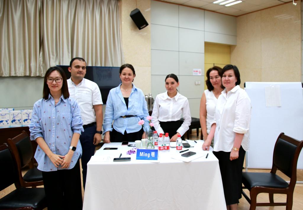 中塔中吉校企合作项目介绍。座谈会上,双方就校企合作人才培养模式、培养成效、来华毕业生就业等进行了交流。