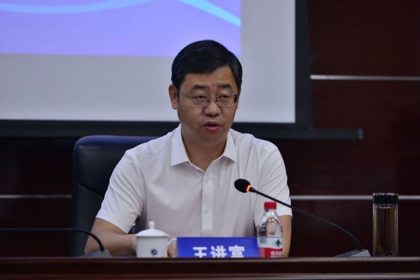 校长王进富致欢迎词,副校长张荣军主持培训会第一环节。