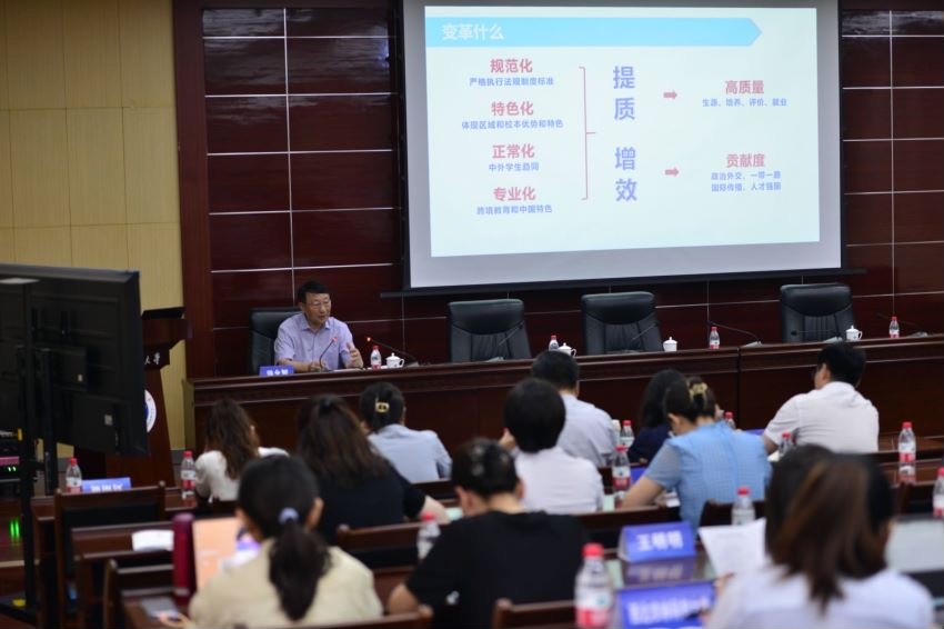 会上,宣布启动陕西省高校第二届来华留学生管理干部技能大赛,大赛将分为初赛、决赛两个阶段。2024年7月进行初赛,9月进行决赛。