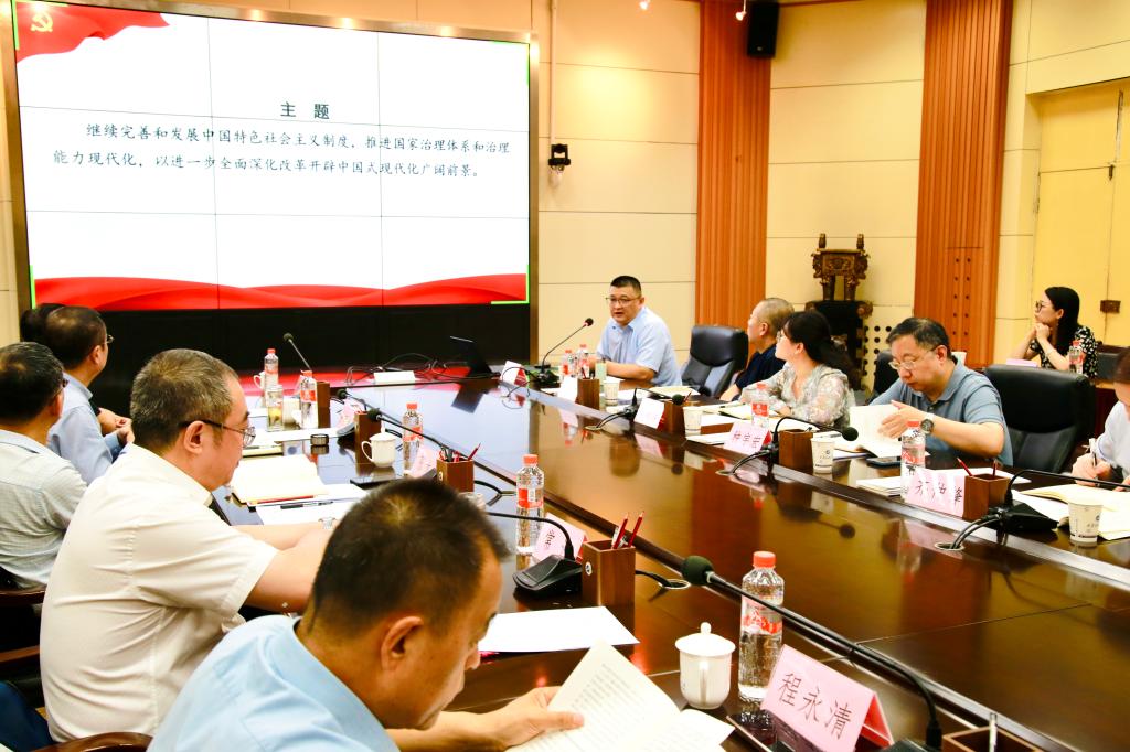 8月1日下午,校党委理论学习中心组(扩大)学习会在雁塔校区会议中心第二会议室召开,深入学习贯彻党的二十届三中全会精神。校党委书记常江主持并讲话,校党政领导王进富、张木、王辉强、程永清、杨战社、苏文甫、张荣军、张君涛、张骁勇、赵健、樊晓民,校党委理论学习中心组成员及各院(系)级单位党组织负责人,通过线上线下联动方式参加学习。