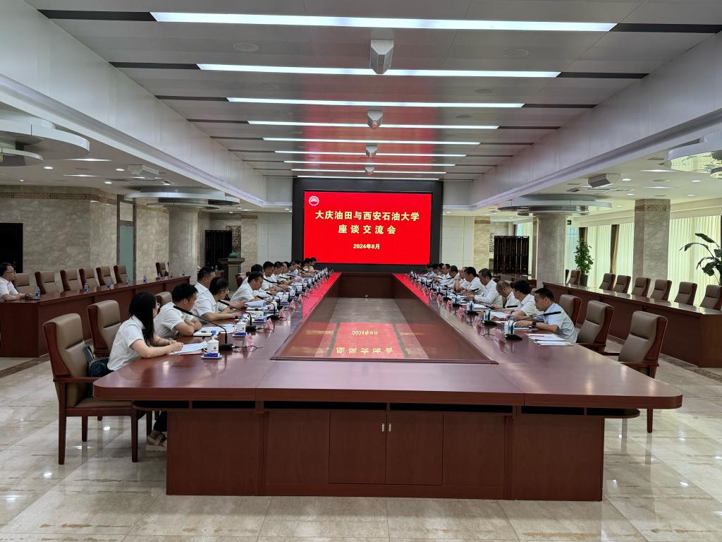 在大庆油田期间,常江、王进富一行与大庆油田党委委员、总会计师梁宁等领导举行座谈交流,就进一步加强人才培养、科技攻关等校企合作进行探讨。并与在油田任职的10名校友代表进行了深入交流。