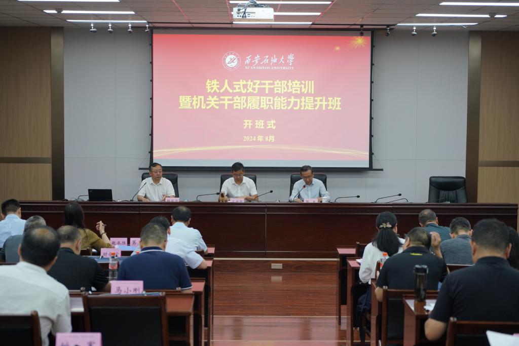 在雁塔校区会议中心举办铁人式好干部培训暨机关干部履职能力提升班。本次培训课程包含8讲专题辅导报告、2场院(系)负责人工作交流和1次分组交流研讨。全体机关、教辅和科研机构处级干部共80余人参加本次培训。