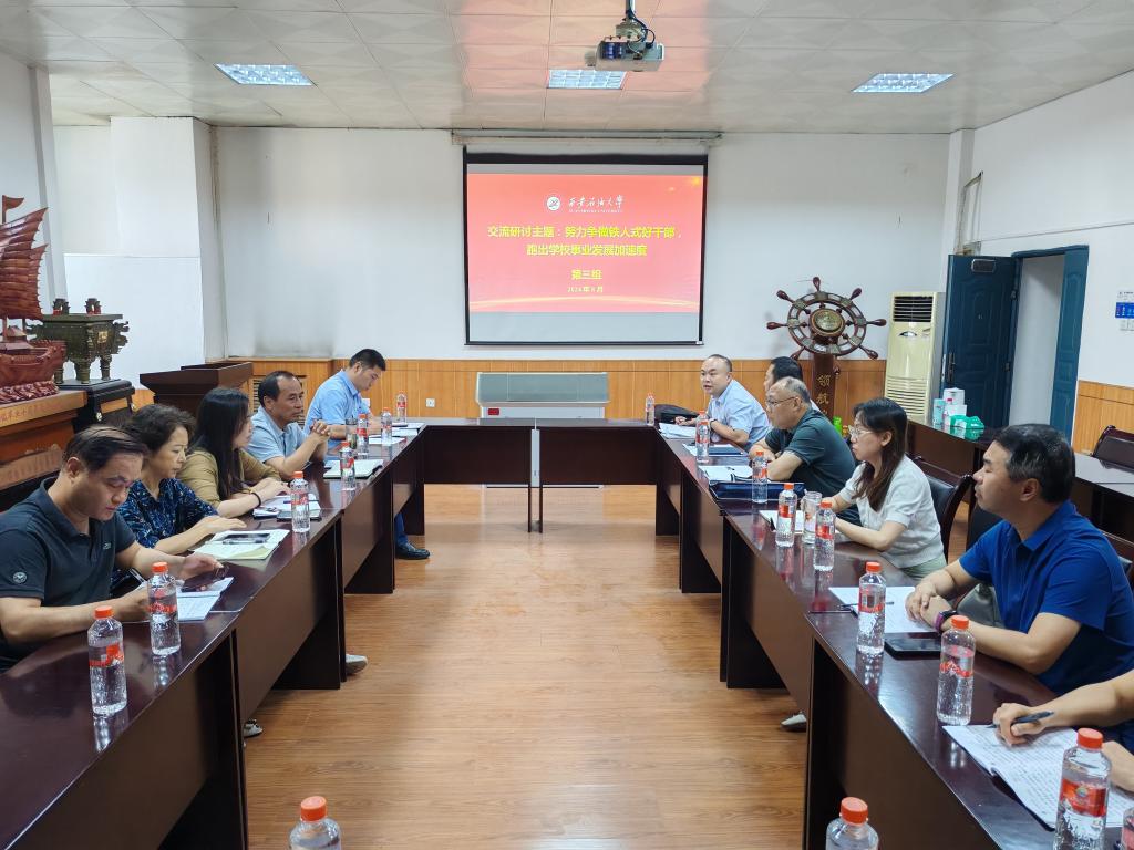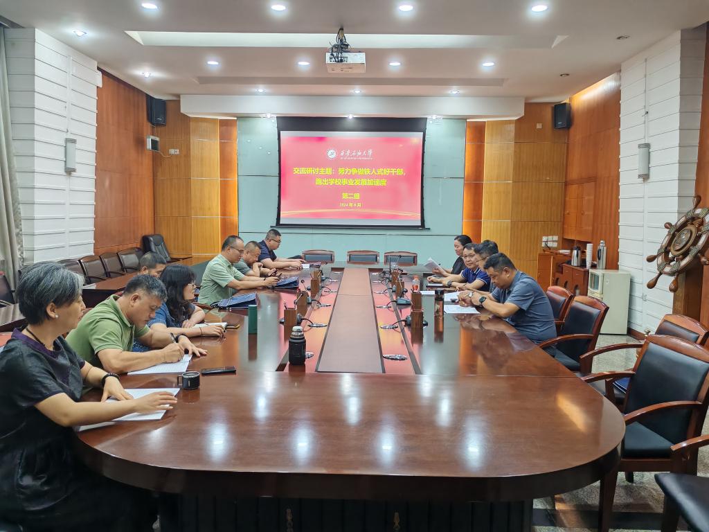 等5位院(系)负责人开展工作交流。院(系)负责人从教学研究、师资队伍、学生工作、经费管理、基础设施等多项具体工作开展交流。他们结合院(系)基层工作面临的问题和困难进行分析,为机关职能部门优化制度建设、改进工作流程、更好地服务师生工作、提升服务质量提出了意见和建议,共同探讨解决制约德州扑克