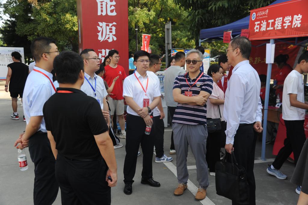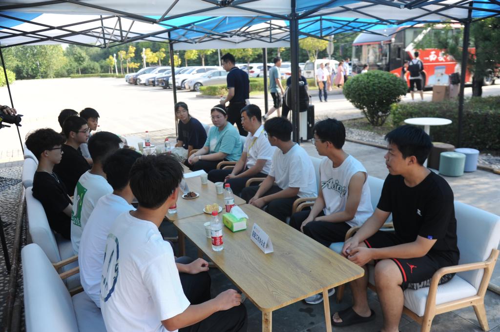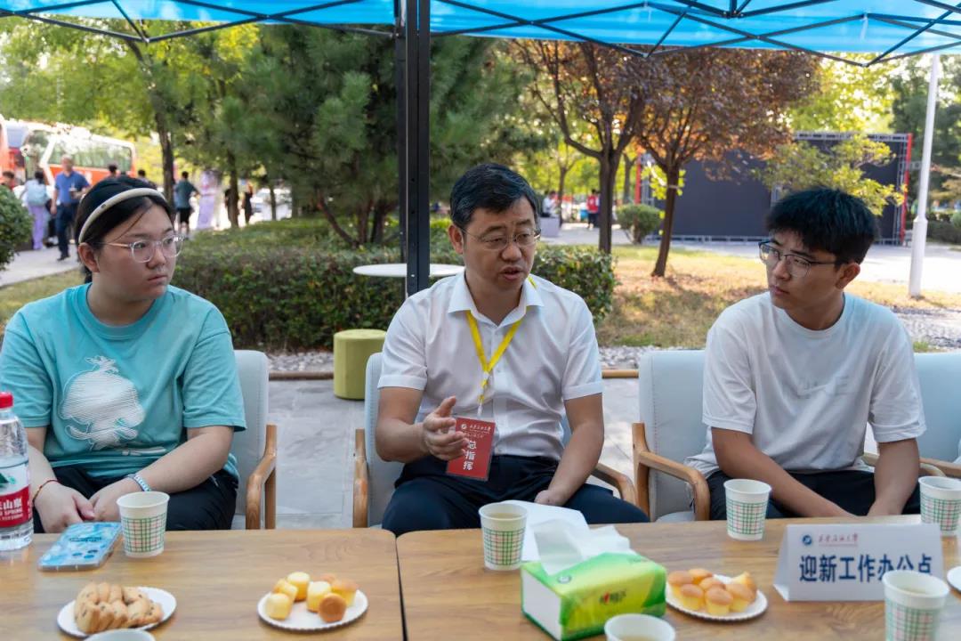 王进富与拔尖人才学生代表在迎新现场进行交流座谈,他对同学们的到来表达了诚挚的欢迎,并亲切询问了大家的生源信息、所学专业和对未来的规划,同时鼓励同学们砥砺求知,学有所成。