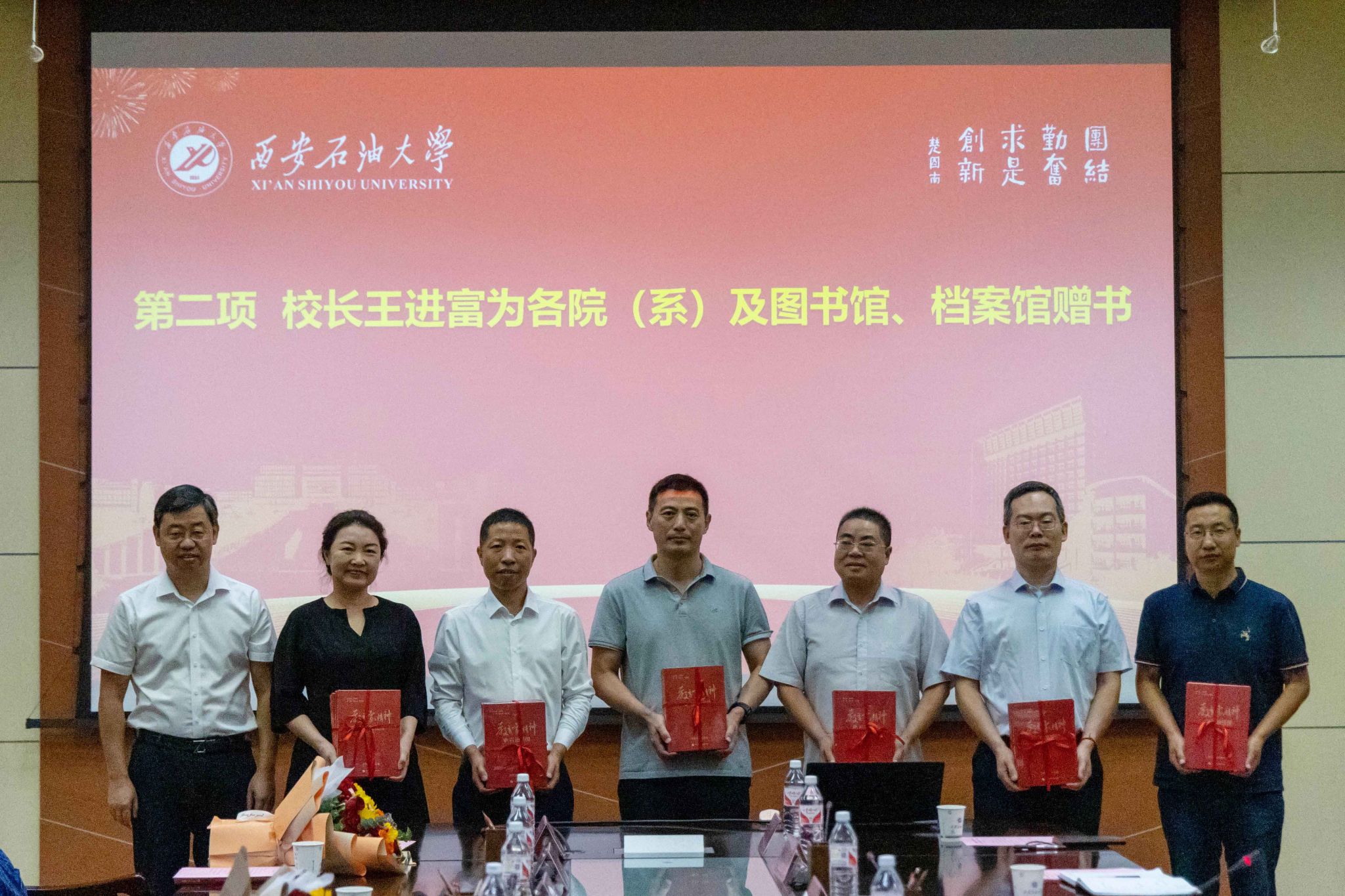 新书发布会上,王进富为入选丛书的11名教师代表和9名亲属代表颁书,向各院(系)、图书馆、档案馆赠书。