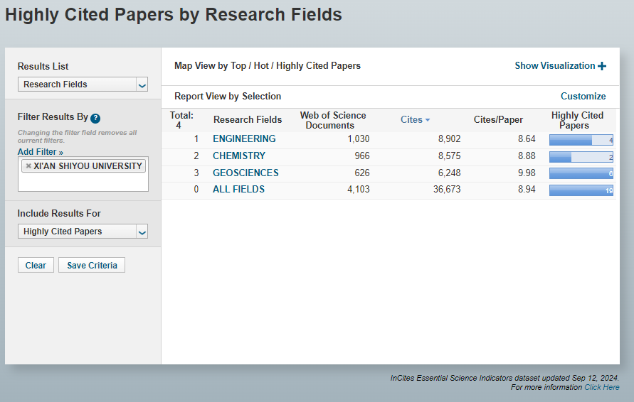 已有工程学、化学、地球科学3个学科进入ESI全球排名前1%。