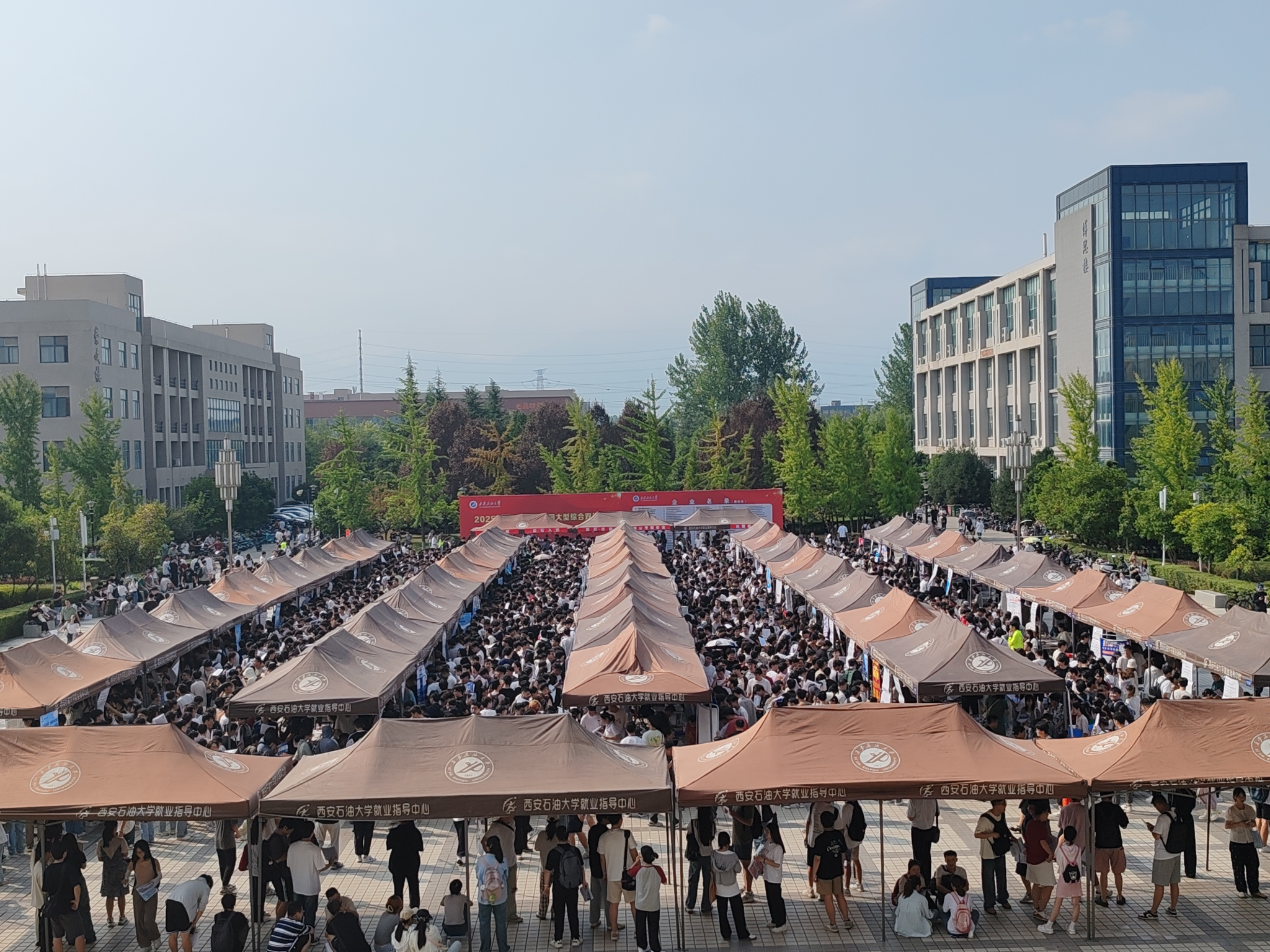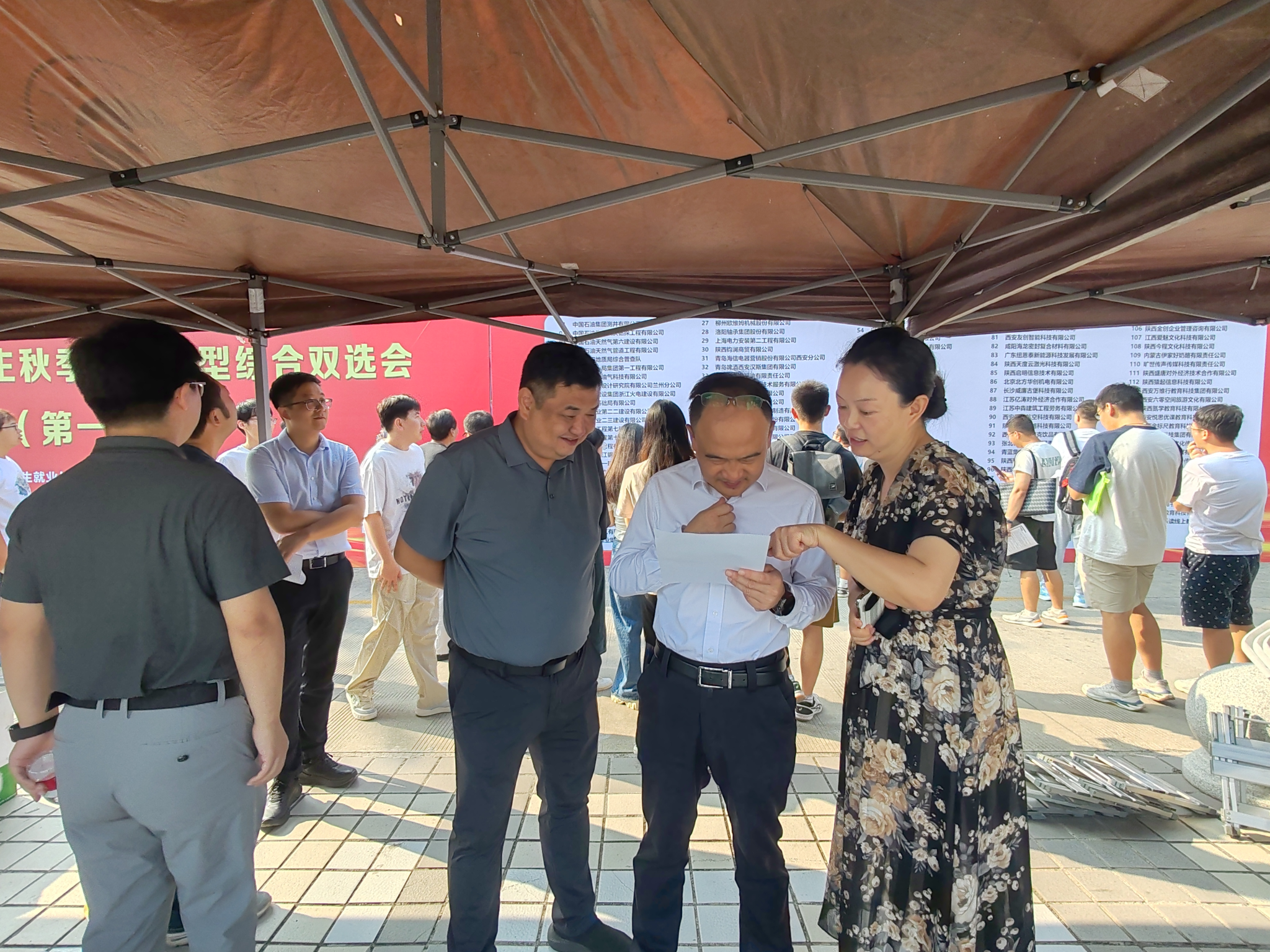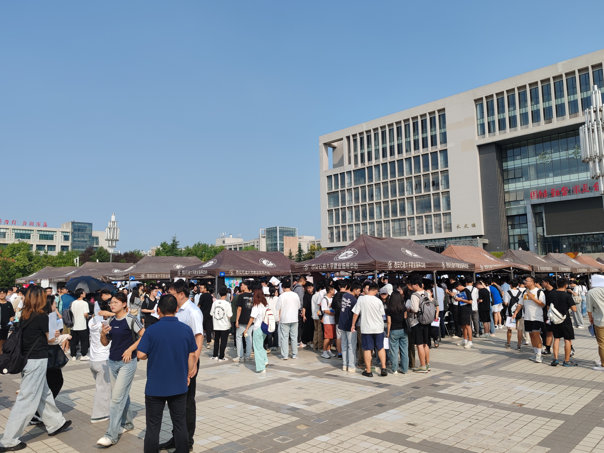 在鄠邑校区图书馆南广场举办首场2025届毕业生秋季校园招聘综合双选会。副校长赵健深入招聘会现场调研指导工作。学生工作部(处)(就业创业指导中心)相关负责同志,各院(系)主管学生工作主要负责人陪同调研。来自全国中国石油集团测井有限公司、中国石油集团川庆钻探工程有限公司、中国石油天然气第六建设有限公司、甘肃煤田地质局综合普查队、中铁二十一局集团第一工程有限公司、青海省化工设计研究院有限公司兰州分公司等128家单位进校招聘,与德州扑克