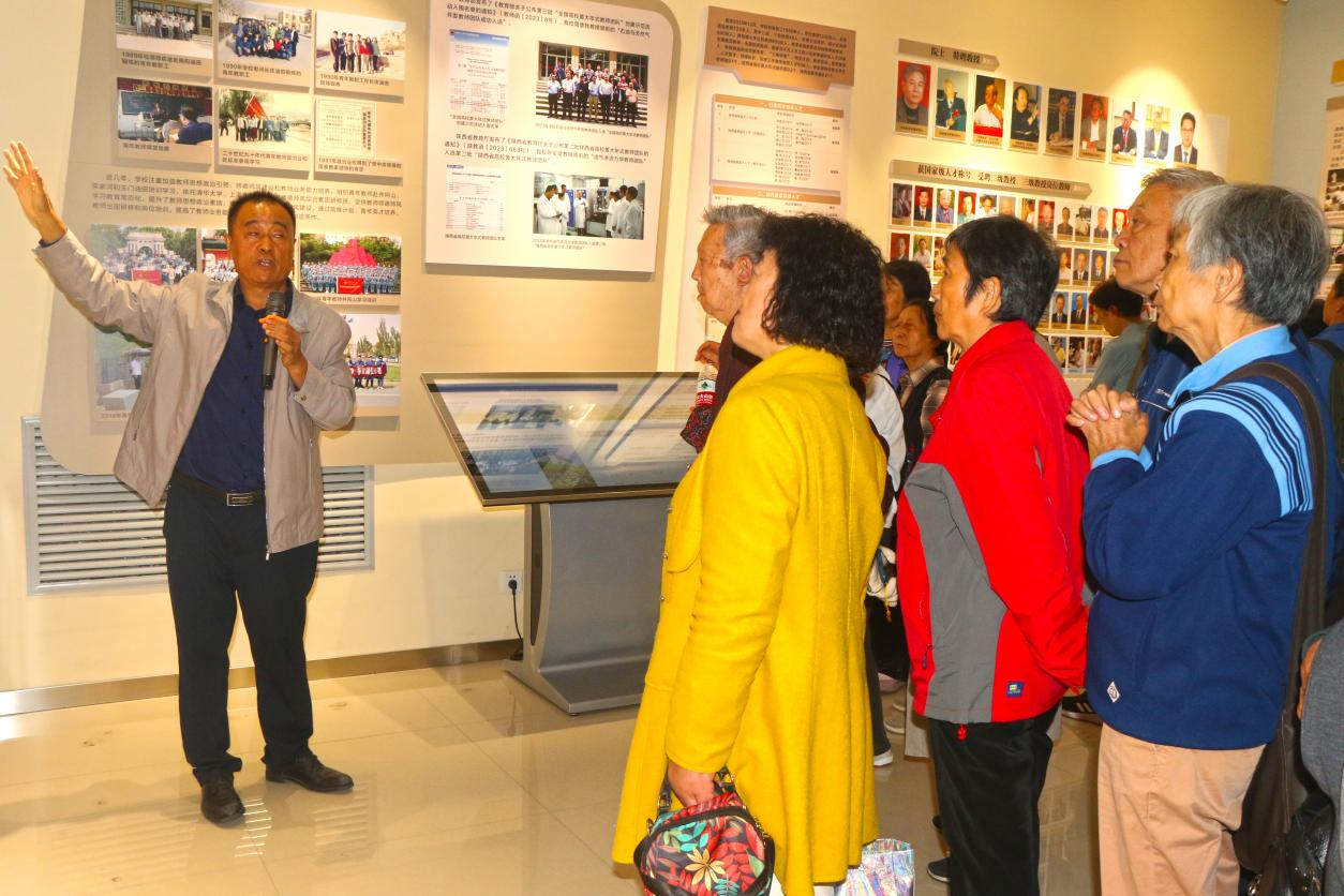 党委副书记程永清为离退休党员同志们讲解校史,离退休工作处、档案馆相关负责人及百余名离退休党员同志参加。