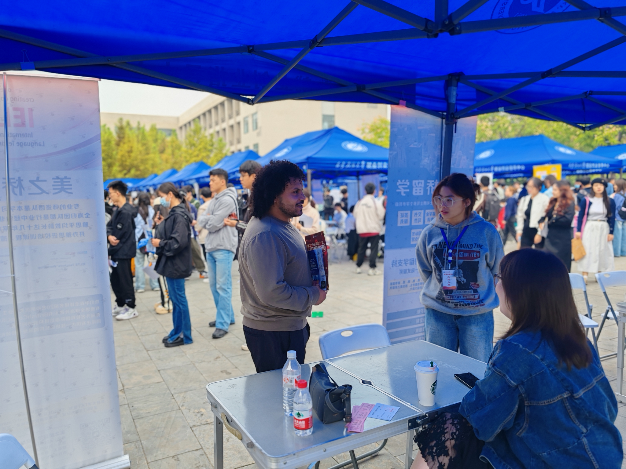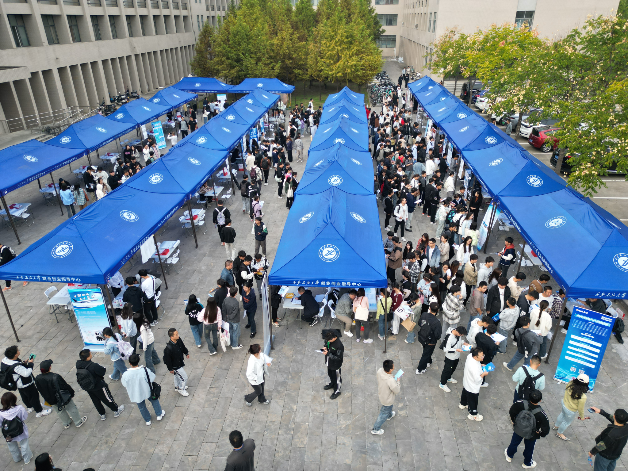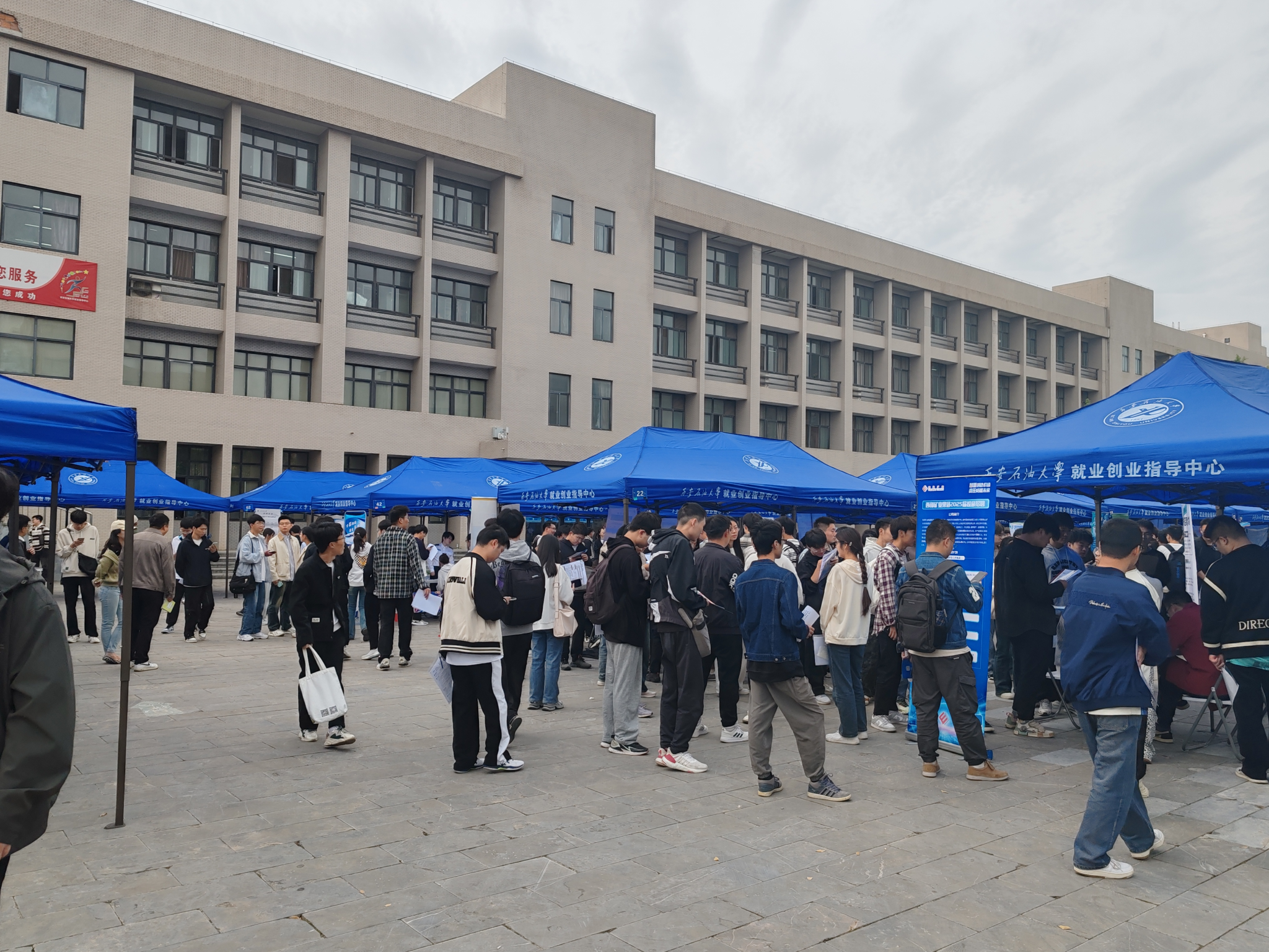 在鄠邑校区江汉林广场举办第四场2025届毕业生秋季校园招聘综合双选会。来自省内外共计68家企事业单位进校招聘,提供总岗位4053个,行业领域覆盖德州扑克