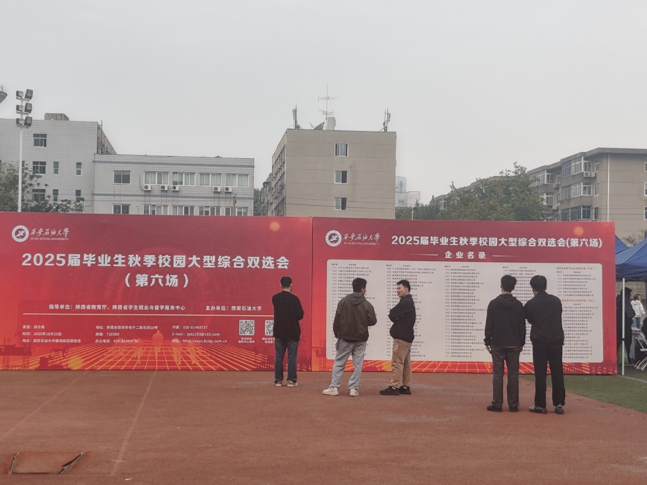 在雁塔校区田径场举办最后一场2025届毕业生秋季校园招聘综合双选会。来自全国中石化中原石油工程设计有限公司、中国石油天然气第六建设有限公司、新疆生产建设兵团石油有限公司、中煤陕西能源化工集团有限公司、陕西建工铁建工程有限公司、陕西地矿物化探队有限公司、西安秦华燃气集团有限公司、齐鲁理工德州扑克