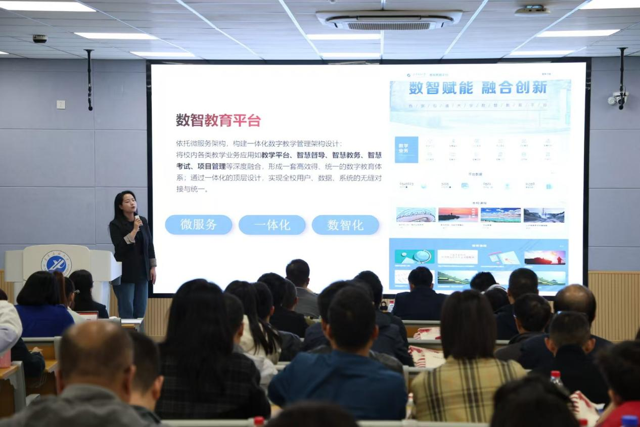 数智教育平台的创新应用与实践》的培训,通过介绍数智教育平台整体情况、常态化混合式教学与应用、智慧课程建设与成果培育三个方面,让教师们了解了如何使用智慧平台将传统教学与现代信息技术相结合,打造高效、互动的混合式教学模式,以及如何利用智能技术提升课堂质量,实现教学的个性化和精准化的方法。