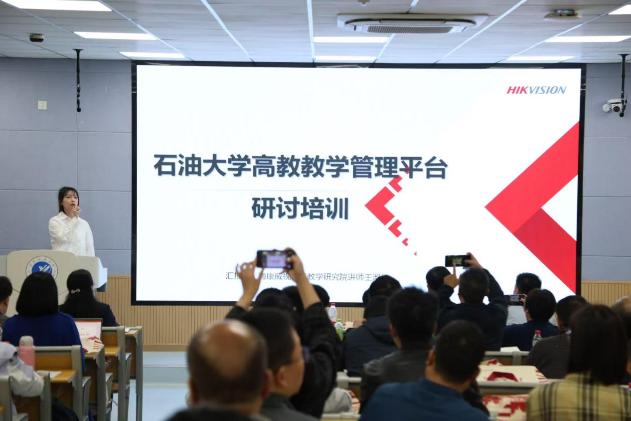 海康威视智慧教学研究院高级讲师作了题为《高校教学管理平台及信息化教学设备深度研讨》的培训,他通过理论讲解与操作演示相结合的方式,介绍了德州扑克