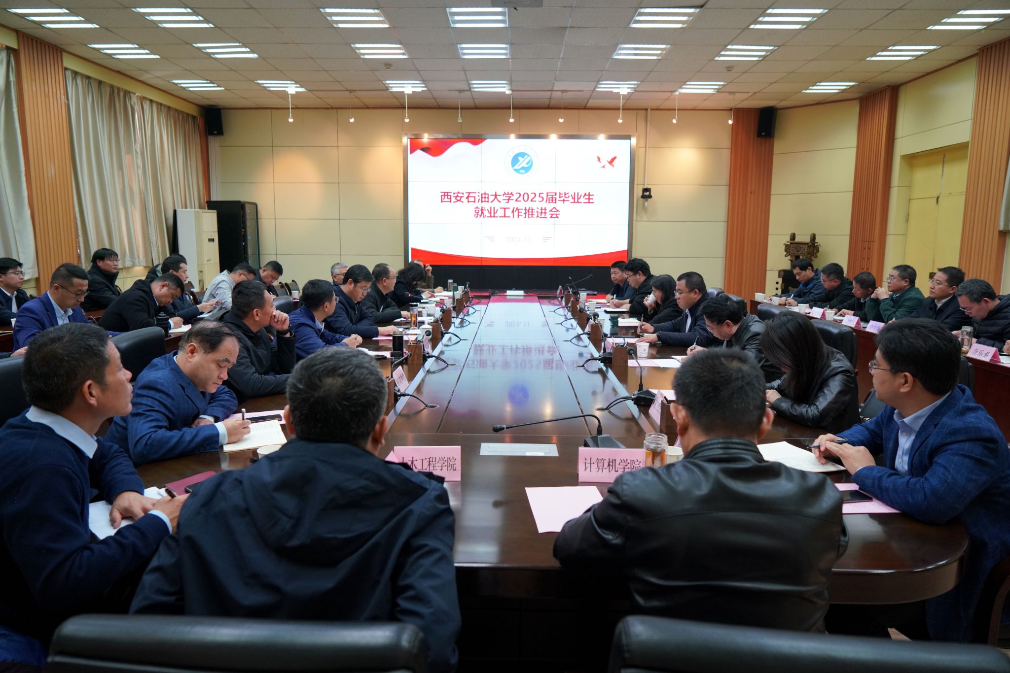 2025届毕业生考研报考情况,各院(系)围绕2024届毕业生毕业去向落实目标和2025届毕业生就业工作进展进行了交流发言。