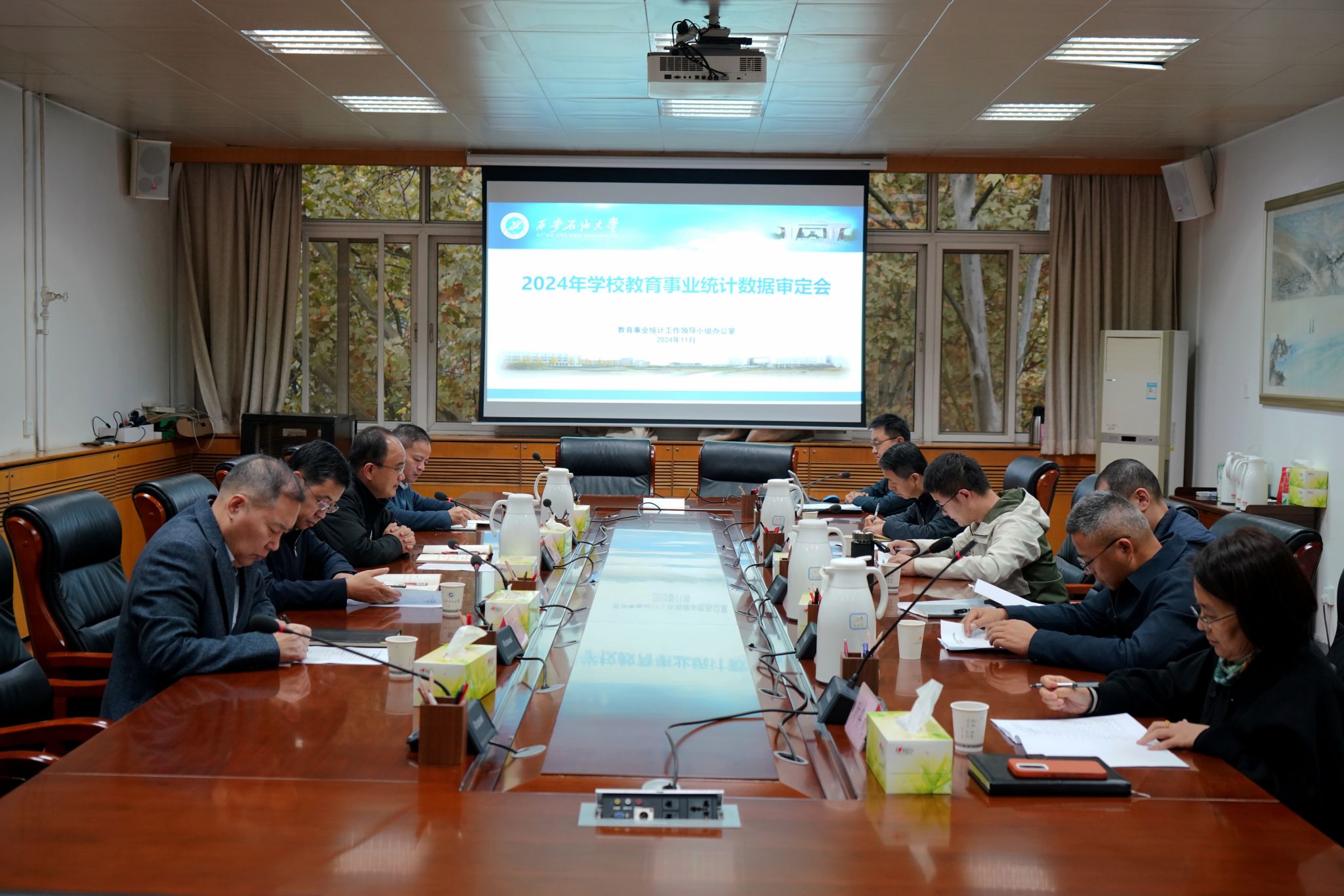 教育事业统计数据审定会,教育事业统计领导小组组长、校长王进富,教育事业统计领导小组成员参加会议,会议由教育事业统计领导小组副组长、副校长赵健主持。