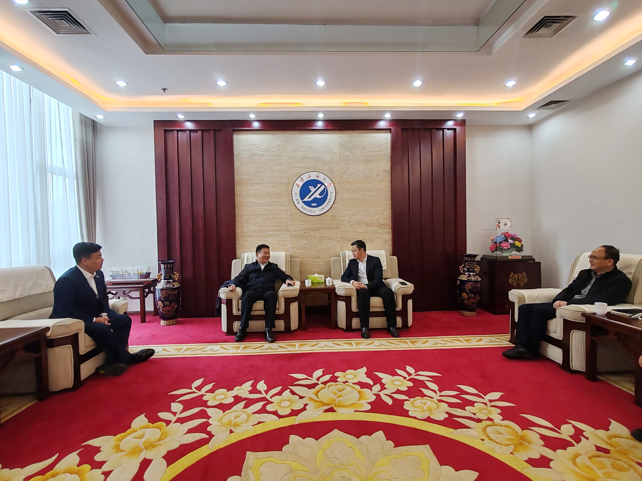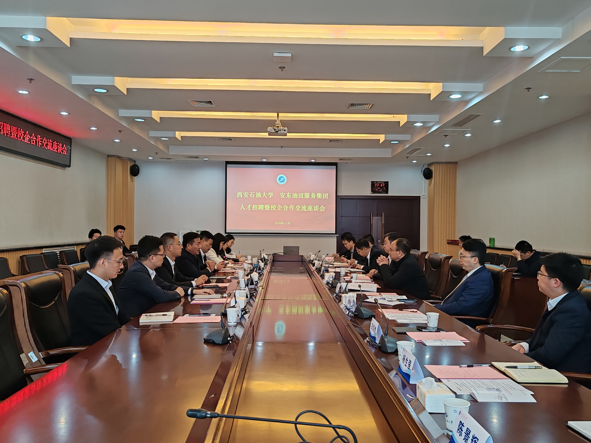 与安东油田服务集团在鄠邑校区第二会议室举行人才招聘暨校企合作交流座谈会。安东油田服务集团执行副总裁兼安东石油技术集团董事长刘国庆、德州扑克