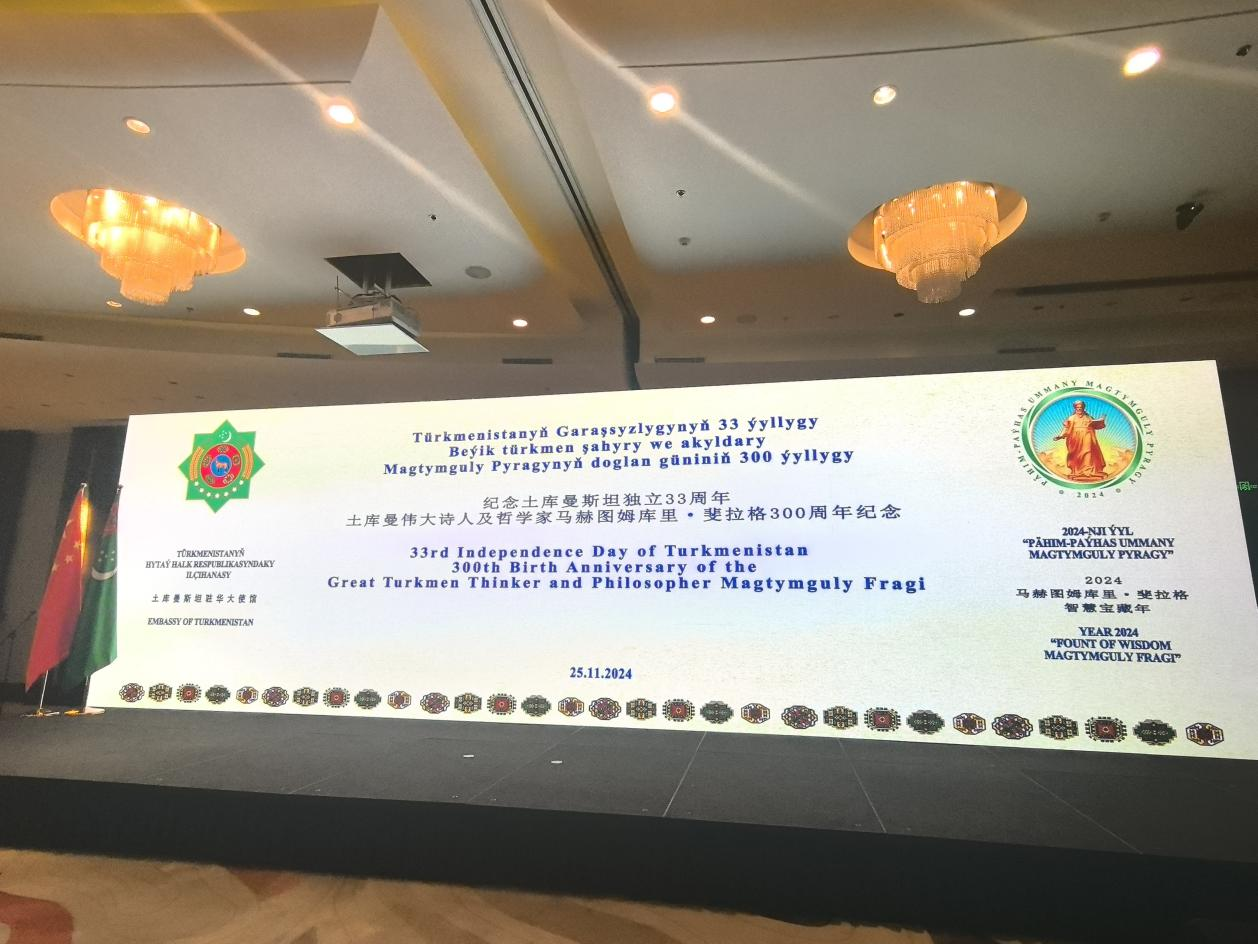 11月25日,土库曼斯坦驻华使馆在北京举办庆祝土库曼斯坦独立33周年暨马赫图姆库里诞辰300周年招待会。