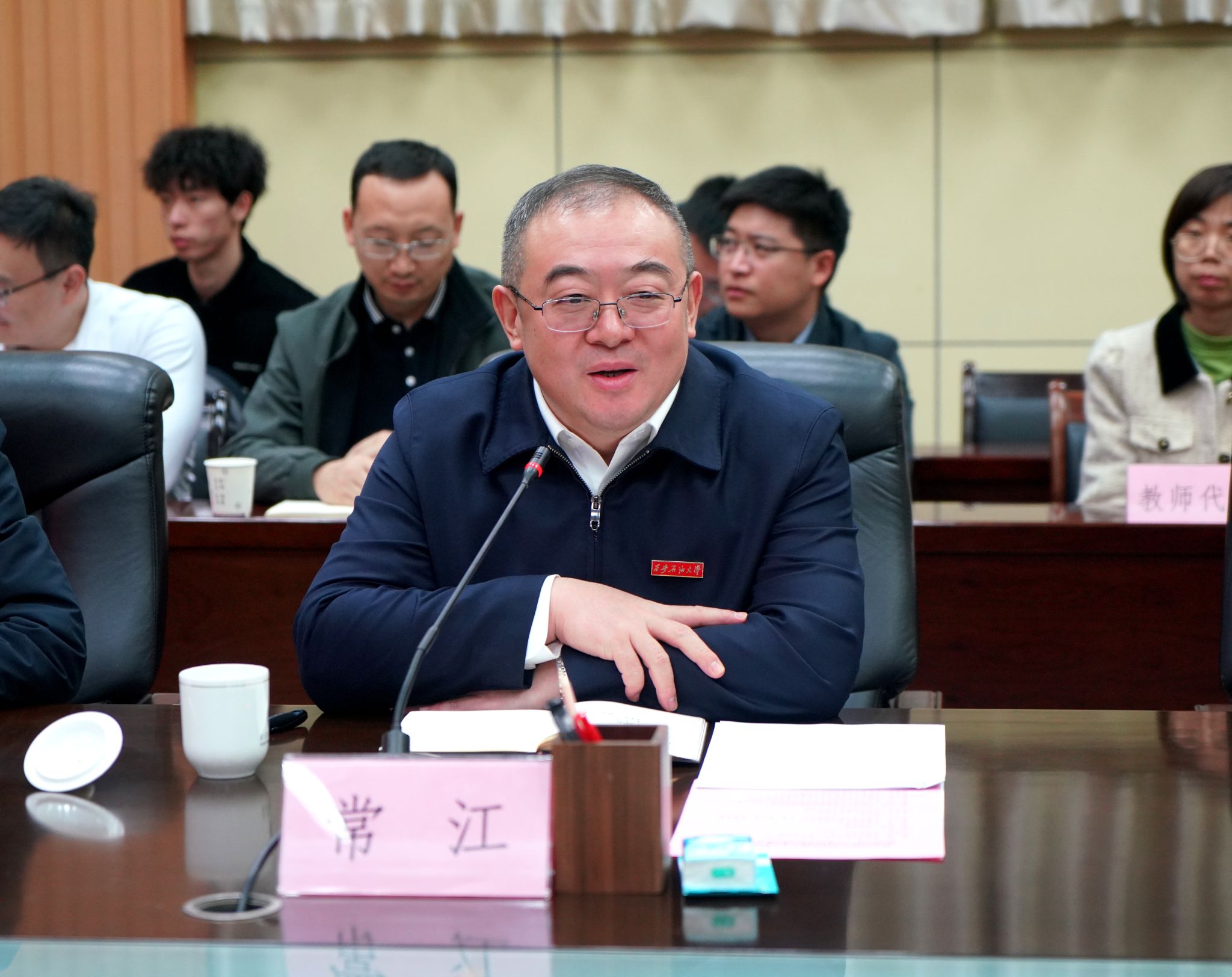 常江在讲话中对崔仕章教授表示热烈欢迎,对德仕能源科技集团对德州扑克