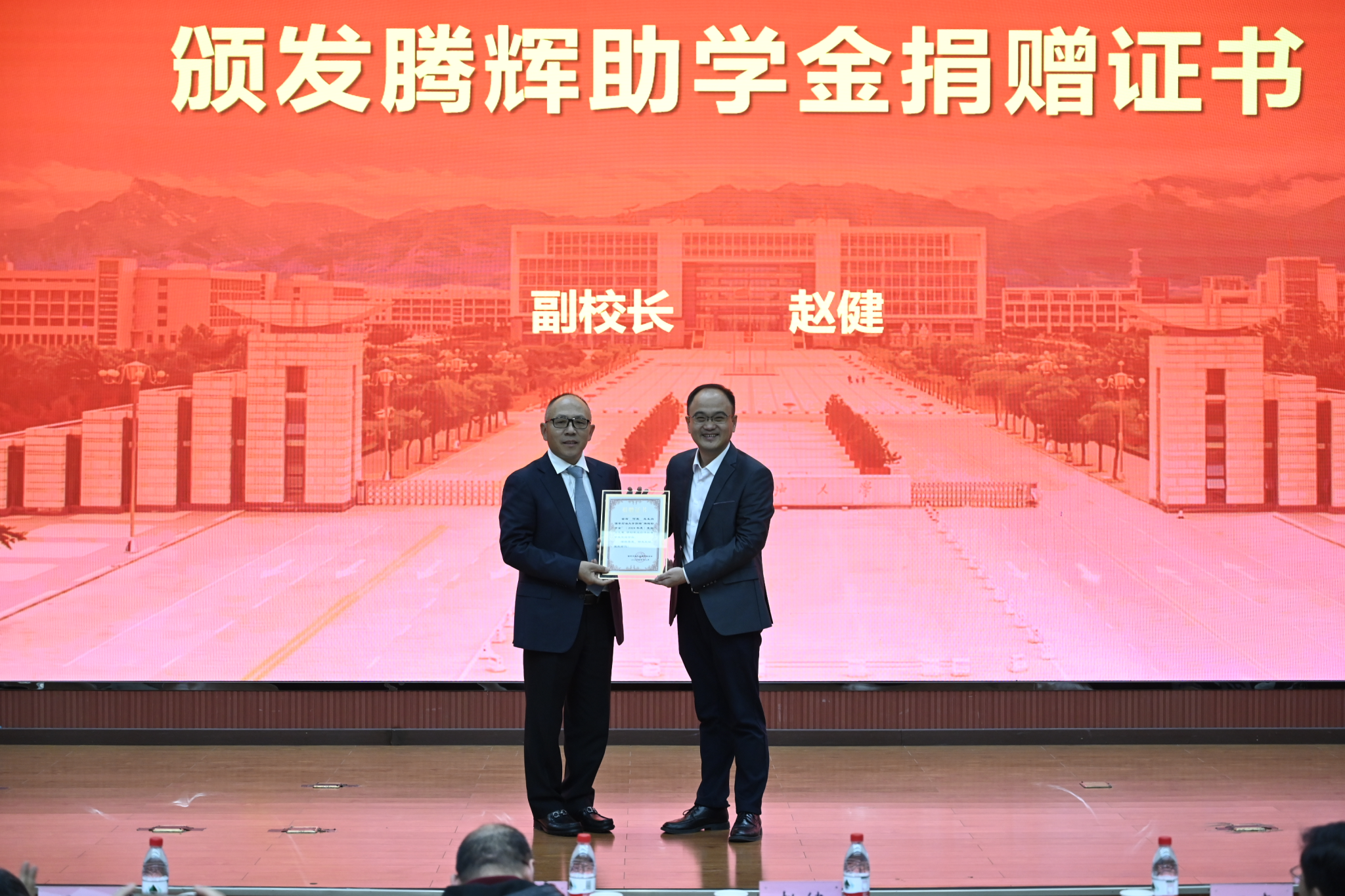 副校长赵健,西安腾辉电气有限公司总经理、“腾辉助学金”主要出资人、德州扑克