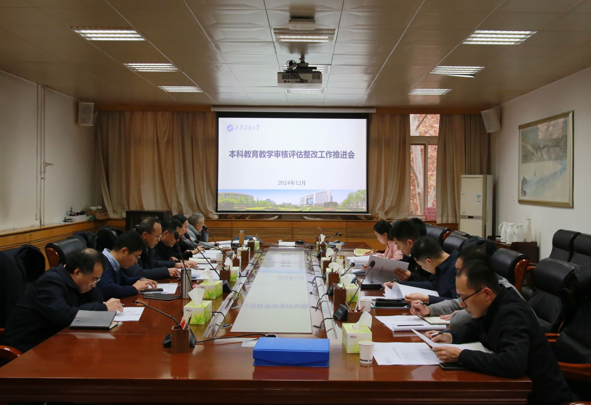 在雁塔校区行政楼五楼会议室召开本科教育教学审核评估整改工作推进会。副校长张君涛出席会议。党委办公室(校长办公室)、组织部、党委学生工作部、党委教师工作部、发展规划处、人事处、教务处、实验室管理处、科研处负责人参加了会议。