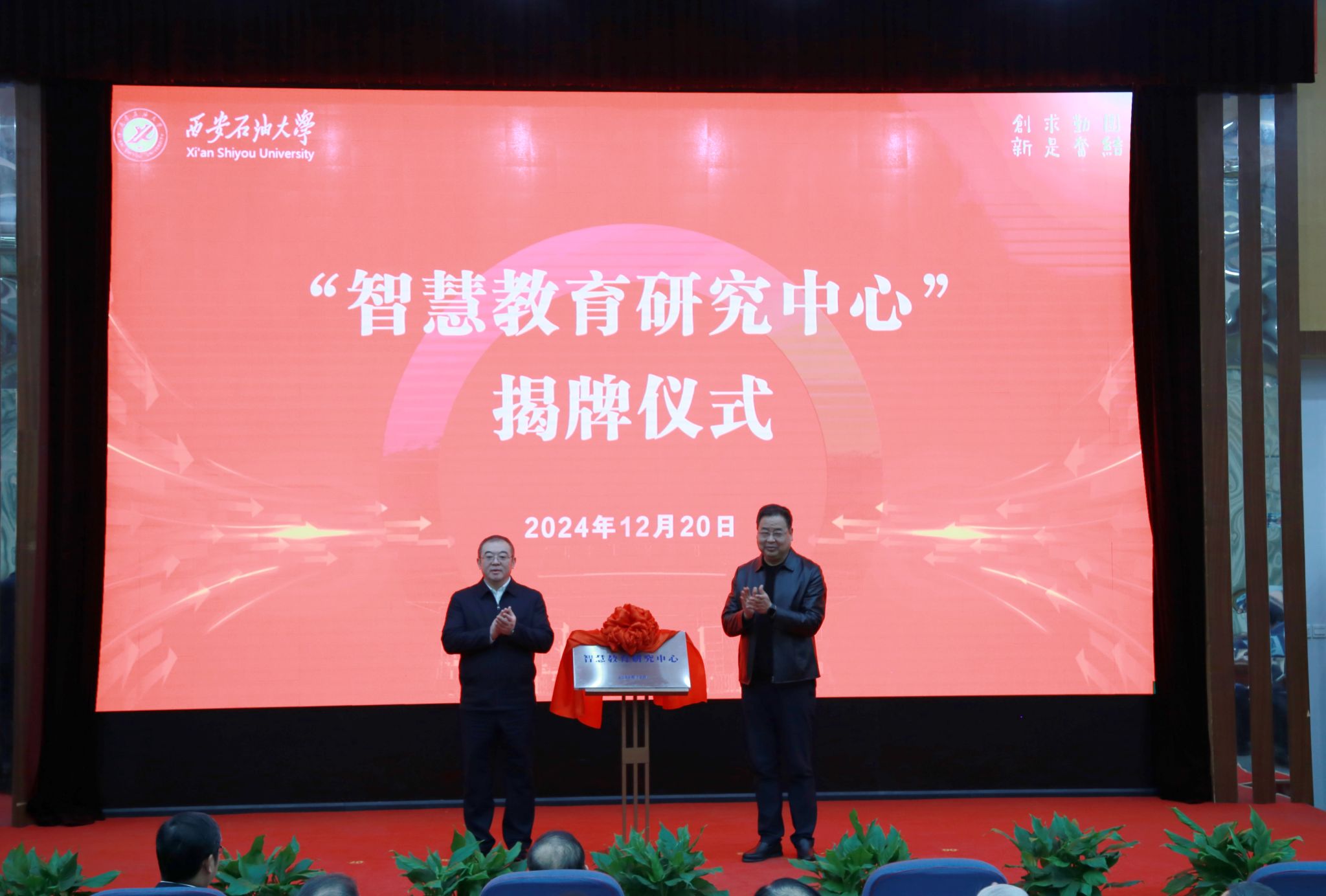 校党委书记常江、陕西省教育厅教育信息化处处长李享阳共同为“智慧教育研究中心”揭牌。