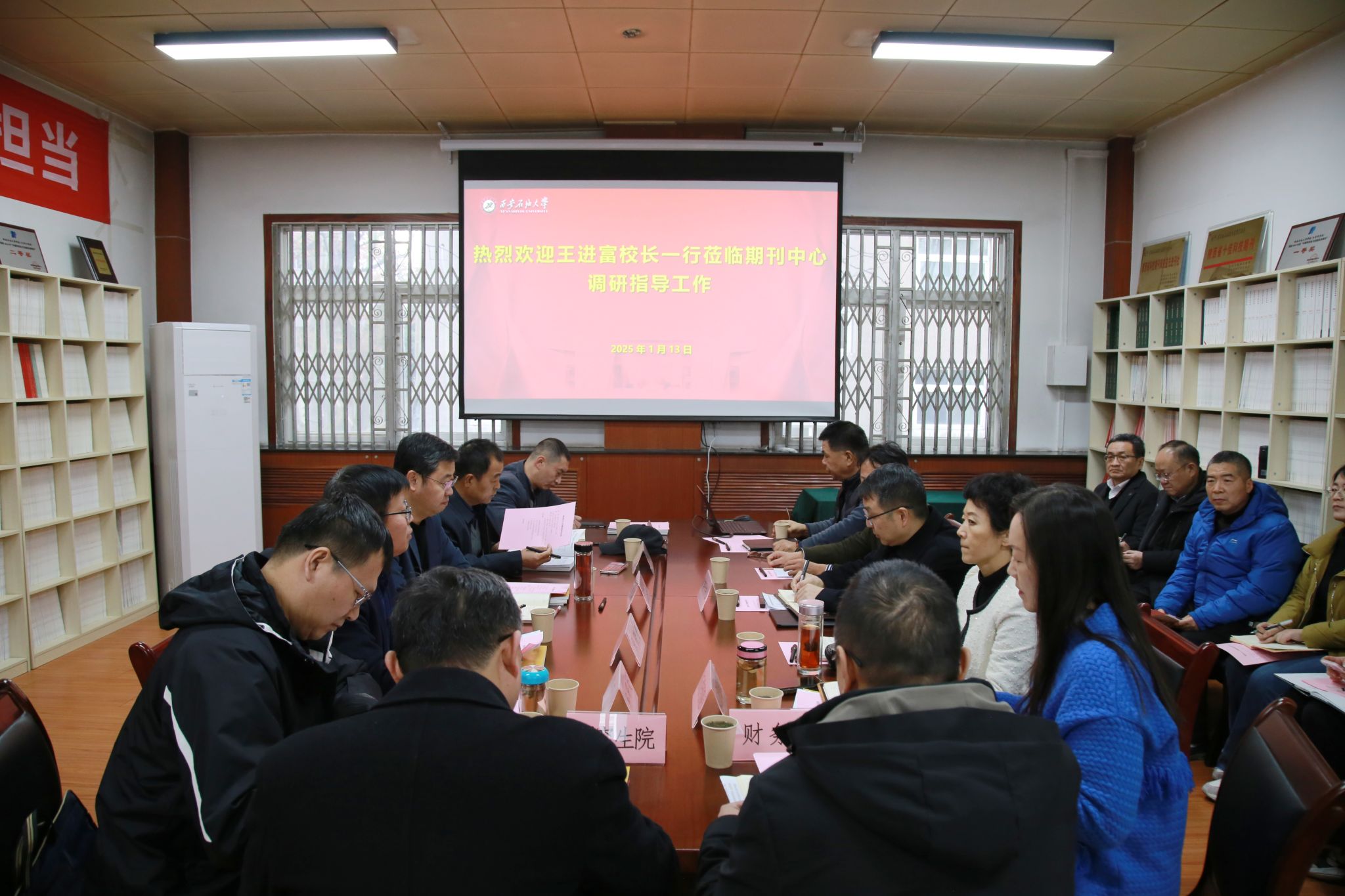 1月13日下午,校长王进富带队赴期刊中心进行工作调研,围绕期刊高质量发展开展座谈交流。校党委副书记程永清出席,副校长张骁勇主持座谈会。人事处、科研处、研究生院(学科建设办公室)、财务处、资产经营公司等部门负责人及期刊中心相关人员参加上述活动。