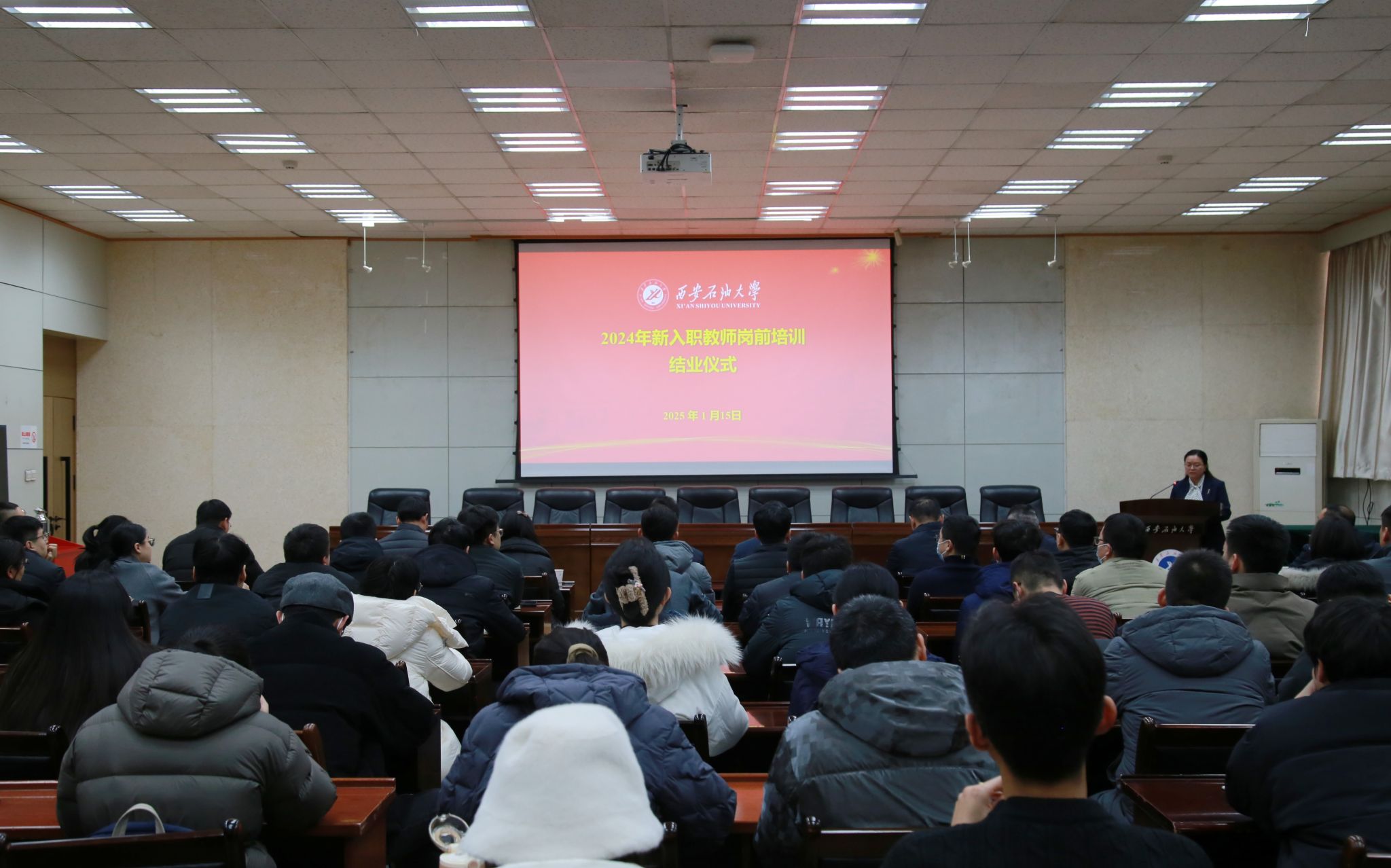在雁塔校区第三会议室举行2024年新入职教师岗前培训结业仪式。校长王进富出席并讲话。校党委副书记程永清,全国模范教师、化学化工德州扑克