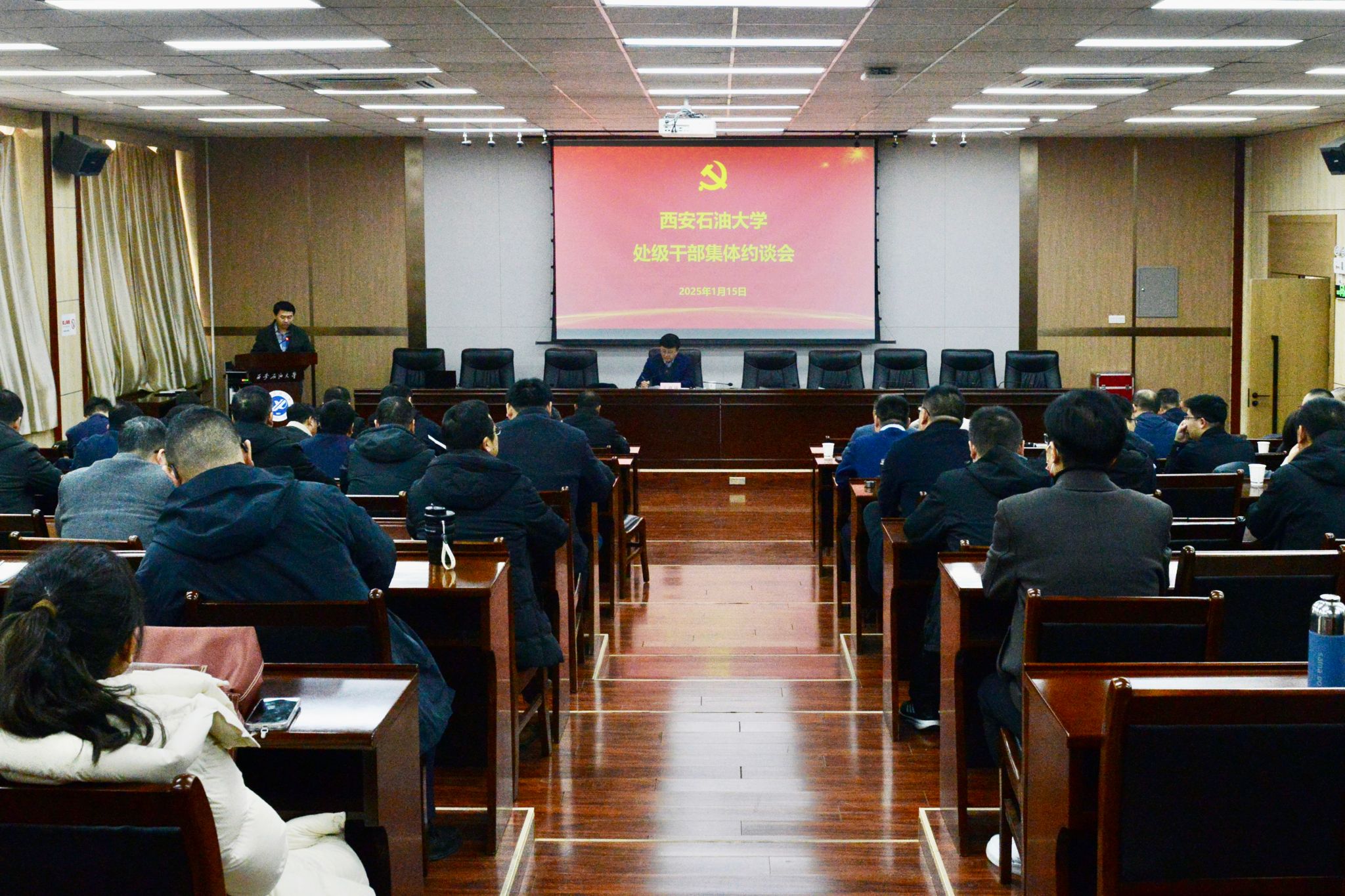 王辉强对与会干部提出五点要求:一是要增强学习主动性,政治能力再提高一点。党员干部一定要加强理论学习,在学习中找差距、找不足、找思路,自觉用新时代党的创新理论观察新形势、研究新情况、解决新问题,使各项工作朝着正确方向,按照客观规律推进。二是要勇于担当作为,主体责任再抓实一点。各位领导干部要在遵规守纪的前提下放手干事、勇于担当、积极作为,切实做到在其位、谋其政、履其职,把工作做在前面,争做行动派,跑出加速度。三是要加强作风建设,表率作用再突出一点。要充分发扬和传承石油精神、铁人精神,坚持问题导向,力戒形式主义、官僚主义,防止过度留痕等加重基层负担问题,把工作抓实抓细,真正做到抓铁有痕、踏石留印。党员干部在作风建设上要做好表率,当好标杆,以上率下,抓出成效,以优良作风推动工作落实,营造干事创业良好氛围。四是要加强党风廉政建设,“一岗双责”再压紧一点。领导干部要认真履行“一岗双责”政治责任,严负其责,严管所辖。加强对分管领域人员的日常教育和监督管理,对可能存在的廉政风险早发现、早预防,加强落实请示报告制度,切实把工作抓在日常,严在平常。五是强化廉洁自律,自我要求再严格一点。领导干部要正确对待和使用手中的权利,依法用权、秉公用权、廉洁用权,不断增强廉洁自律和纪律规矩意识,带头抵制违规吃喝等“四风”问题,廉洁节俭过节,营造风清气正的校园氛围。