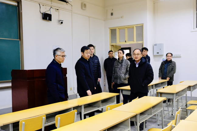 第三次党代会精神,加快推进三校区功能布局优化调整到位,近日,校长王进富带队调研三校区公用房使用情况,指导空间资源优化调整工作,看望假期坚守岗位的师生员工,并对各校区进行安全检查,副校长张骁勇、赵健陪同。