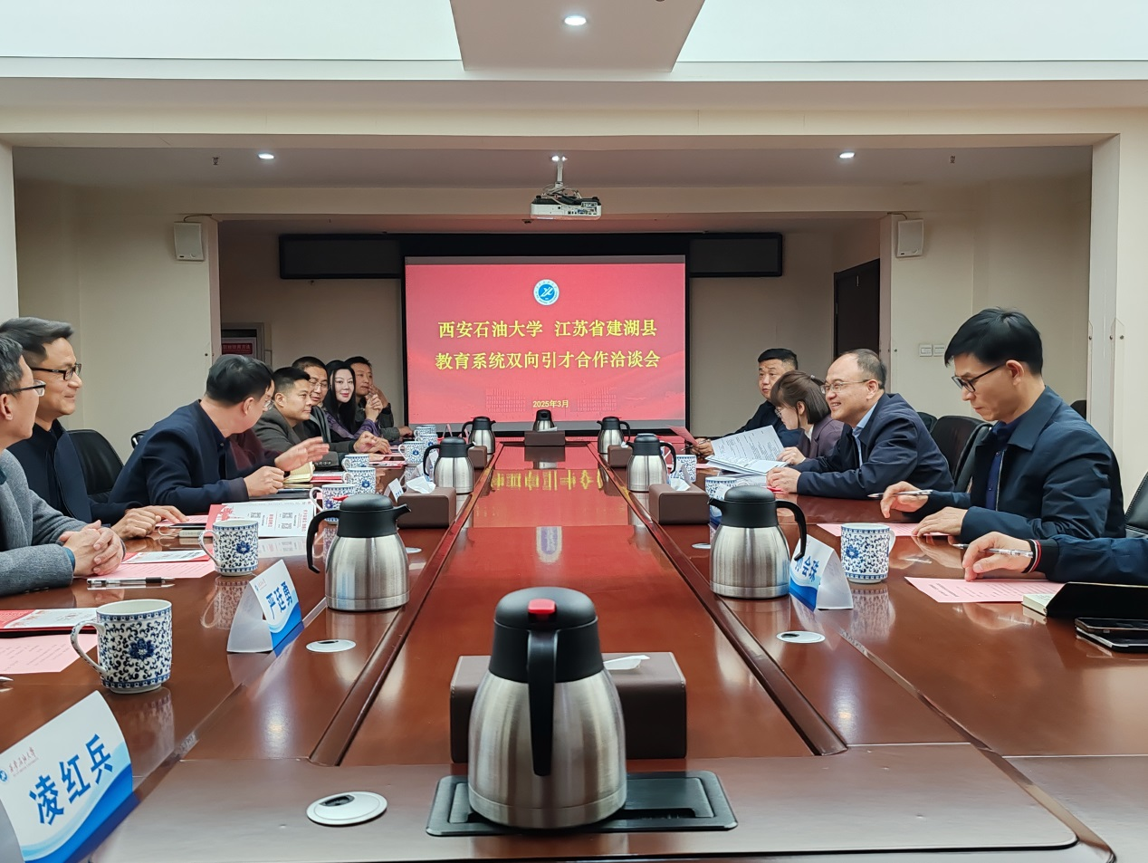 在明德校区培训中心北楼201会议室举行与江苏省建湖县教育系统双向引才合作洽谈会。德州扑克