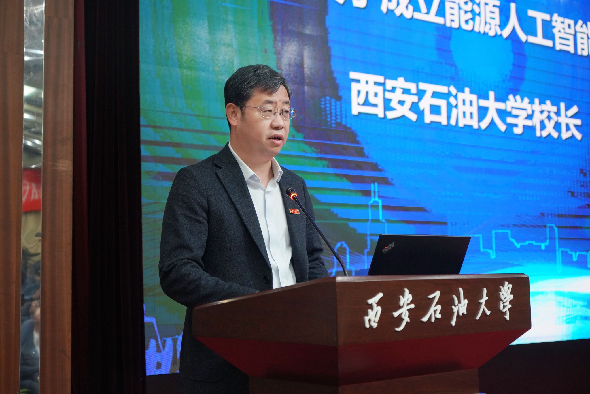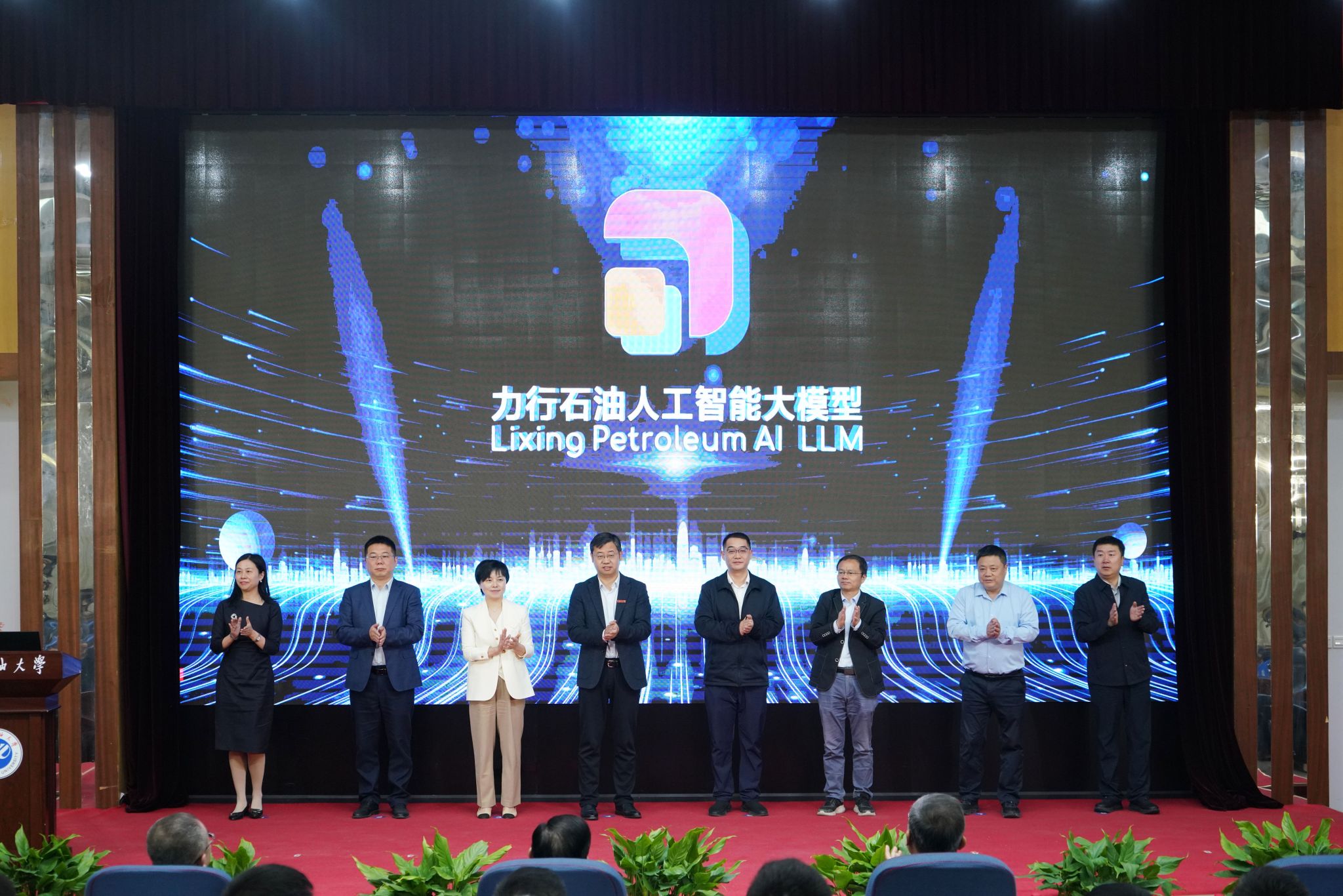 校长王进富共同点亮LOGO,正式发布“力行石油人工智能大模型”。