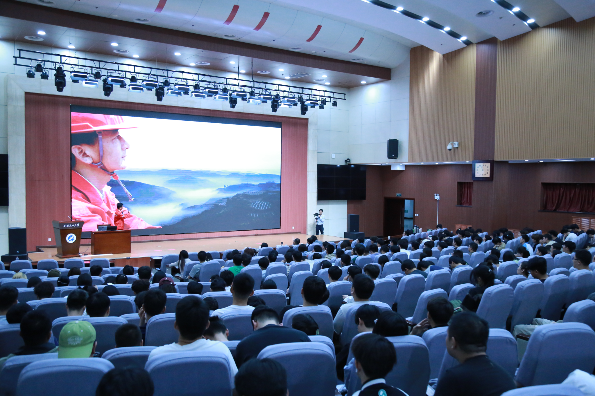 的“校外兼职辅导员”,这是一次精神的“播种”。要求同学们要从杨义兴校友讲述的油田一线故事中,学习“择一事终一生”的专注,涵养“千万锤成一器”的追求,厚植“功成不必在我”的胸怀,让“苦干实干”的石油传统精神在校园里生根发芽。三是要接续精神火炬,书写青春答卷。他谈到同学们手中握着的不仅是书本,更是能源报国的接力棒。希望大家对标优秀校友,在新时代的征程中,用奋斗打磨青春底色,用担当诠释石油人的赤诚!