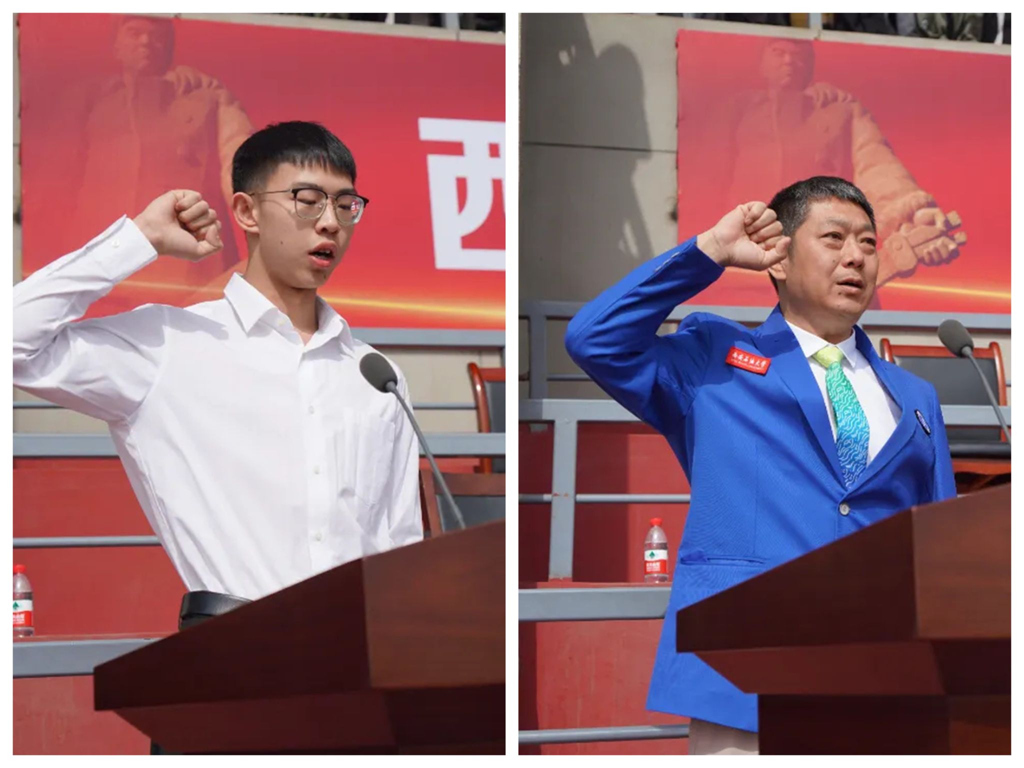 教师尤琨分别代表运动员和裁判员宣誓。运动员承诺将遵守规则、尊重对手,赛出风格与水平;裁判员保证秉持公平公正原则,严肃认真执裁,为比赛顺利进行保驾护航。