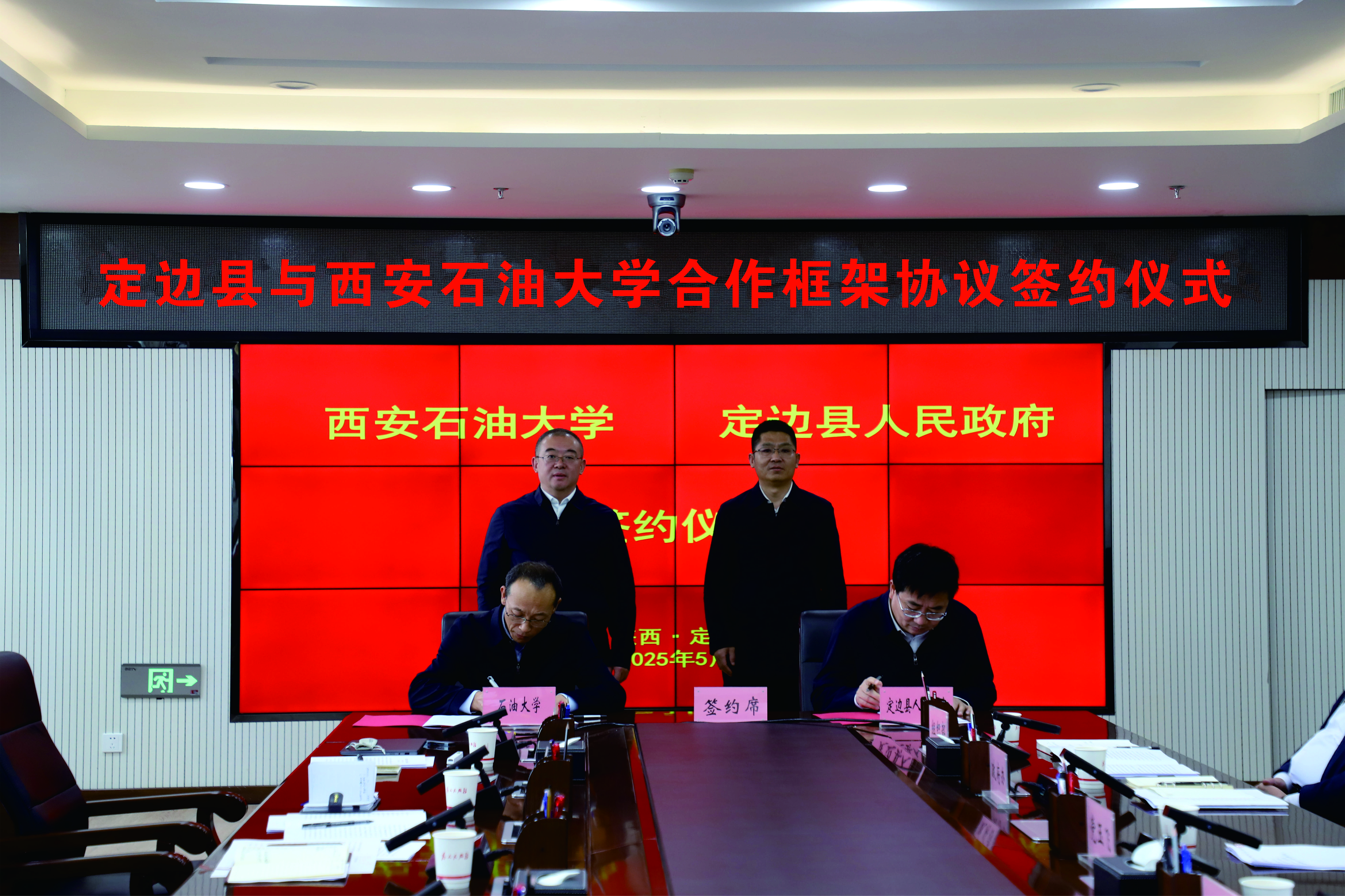 5月9日常江书记一行来到定边县,出席了校地合作协议签署仪式暨座谈会,定边县委书记姬世平,县委常委、副县长党玉飞,以及定边县各相关职能部门及县域所辖部分企业负责人参加了签约仪式和座谈会,会议由县委常委、宣传部部长刘云霞主持。