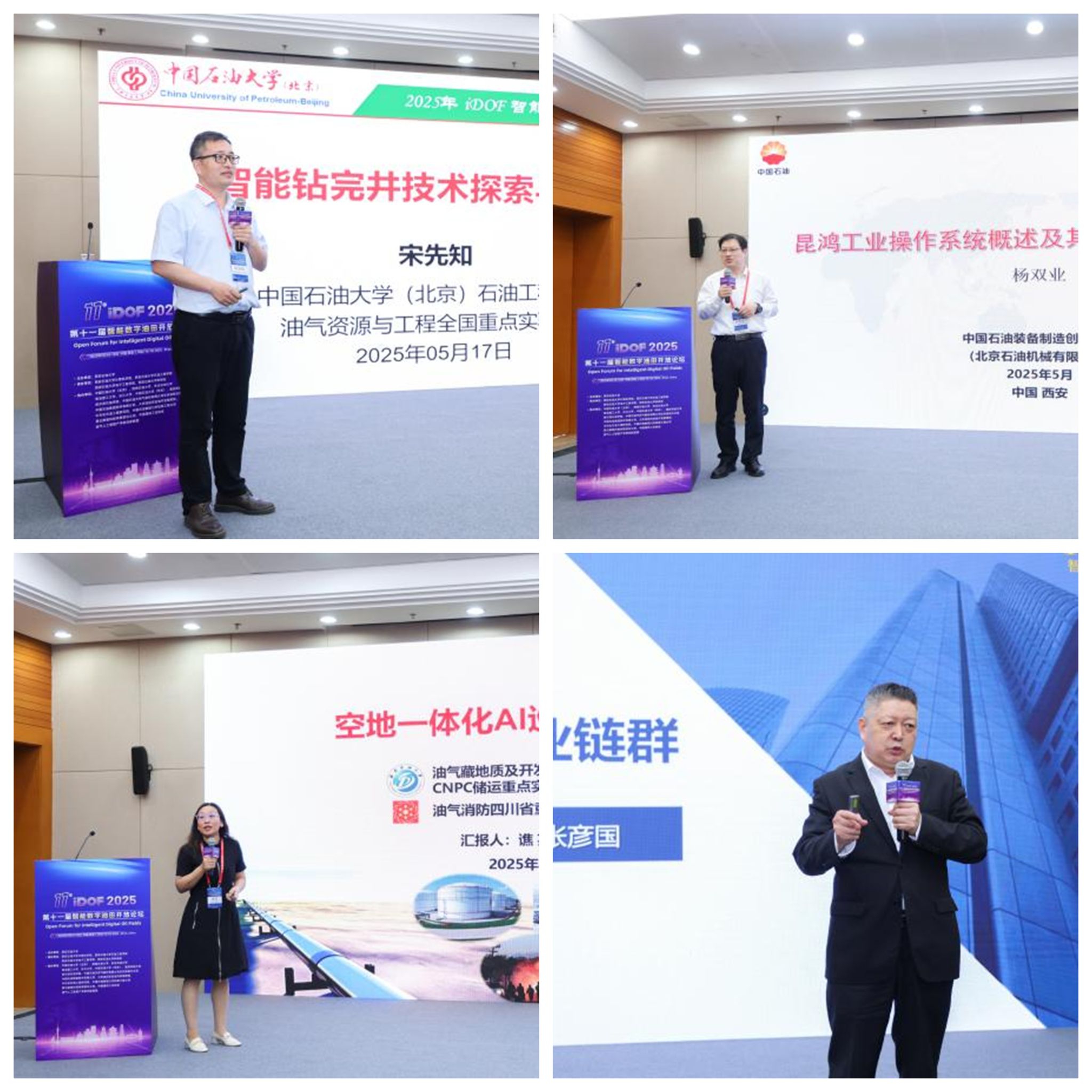 iDOF 2025 则以“数智驱动,绿色转型”为主题,邀请中国石油大学(北京)宋先知教授、北京石油机械有限公司杨双业副总经理等行业专家,分享智能钻完井技术、工业操作系统在油气装备中的应用实践。会议还设置 “天空一体化无人巡检 AI 平台”“透明油藏技术体系构建” 等专题报告,推动学术界与产业界的深度对接。