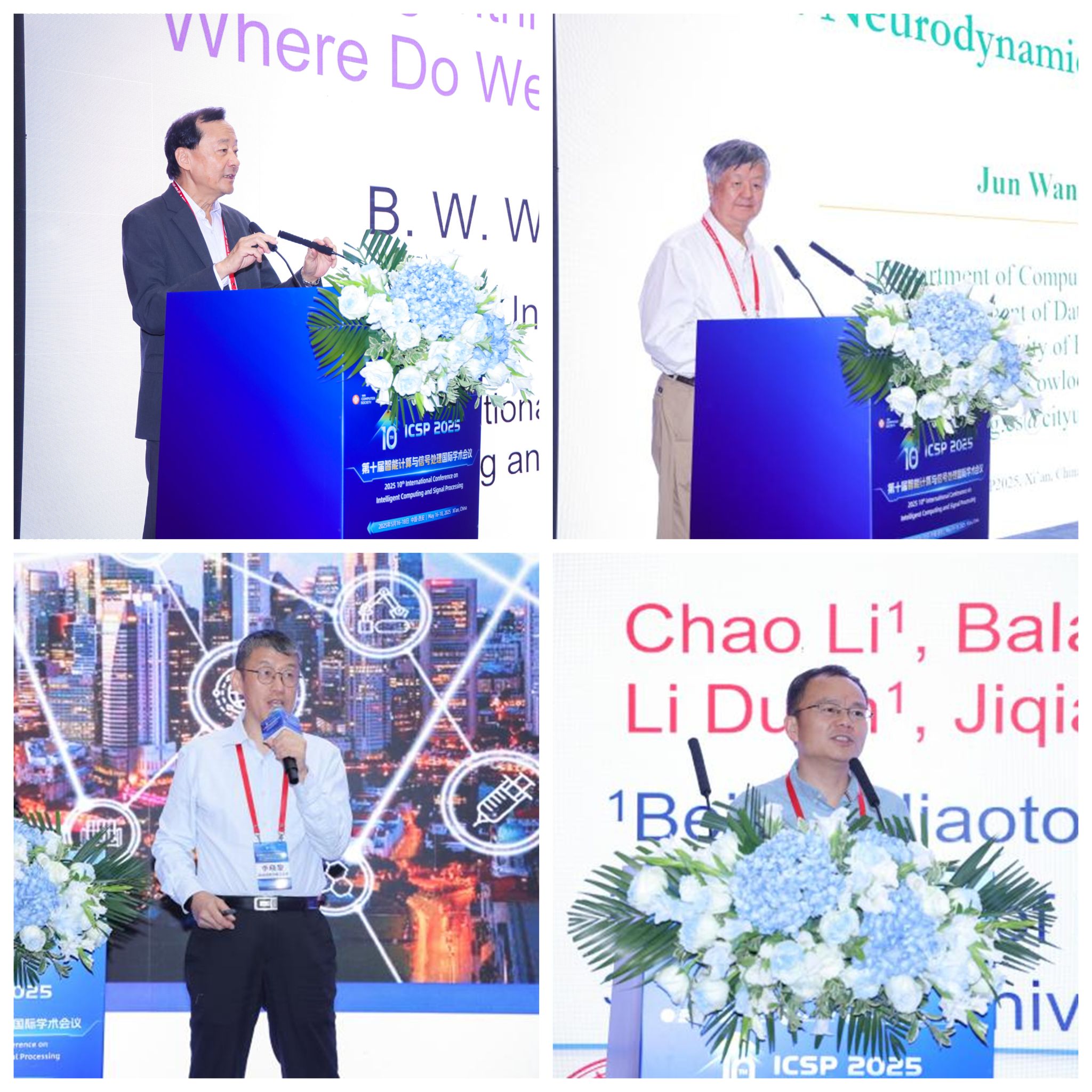 在ICSP 2025 主旨报告环节,香港中文大学华云生教授以 “大应用、大 AI、大数据、大算法、大系统时代的技术路径” 为题,探讨了智能计算在跨学科场景中的整合应用。新加坡南洋理工大学李晓黎教授分享了“基于传感器的时间序列分析 AI 技术”,展示了 AI 在工业数据挖掘中的最新成果。西安交通大学王伟教授、西交利物浦大学徐树公教授等专家分别围绕区块链安全、6G 通信等热点话题作报告,引发与会者热烈讨论。