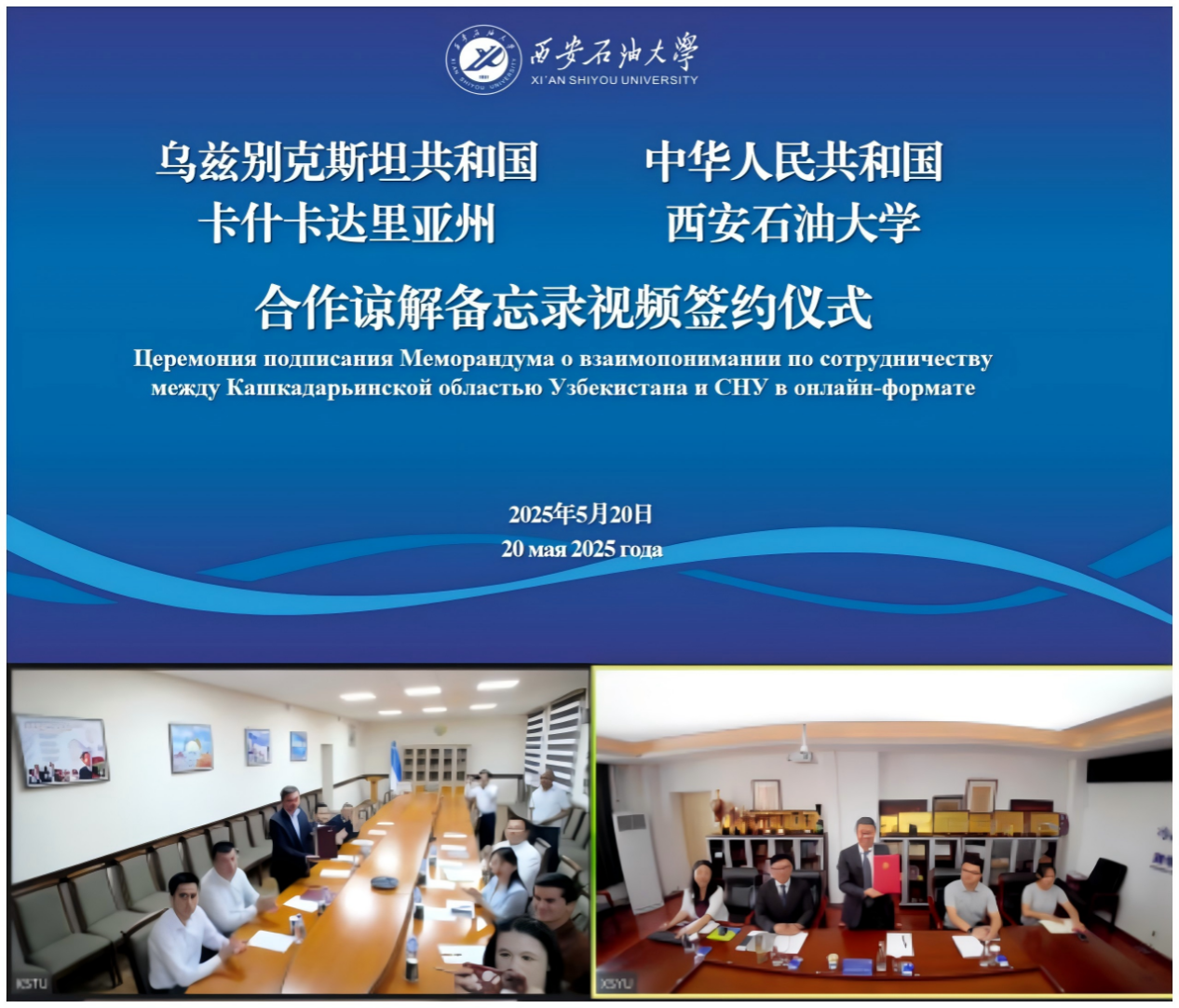 与乌兹别克斯坦卡什卡达里亚州合作谅解备忘录视频签约仪式在雁塔校区东方石油楼801举行。乌兹别克斯坦卡什卡达里亚州副州长安尔瓦・卡比洛夫,卡尔希国立技术大学副校长乌扎科夫·古洛姆·诺尔博耶维奇,德州扑克