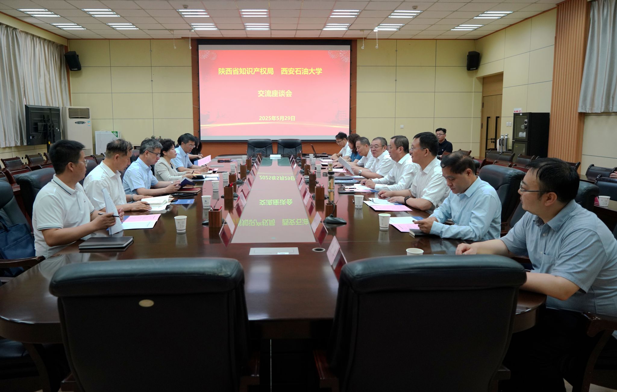 5月29日上午,陕西省知识产权局党组书记、局长沈黎萍一行来校座谈交流。会议在雁塔校区会议中心第一会议室举行,党委书记常江出席会议,副校长张荣军主持会议。双方围绕知识产权创造、保护与转化展开深度对话,并就深化战略合作达成高度共识。