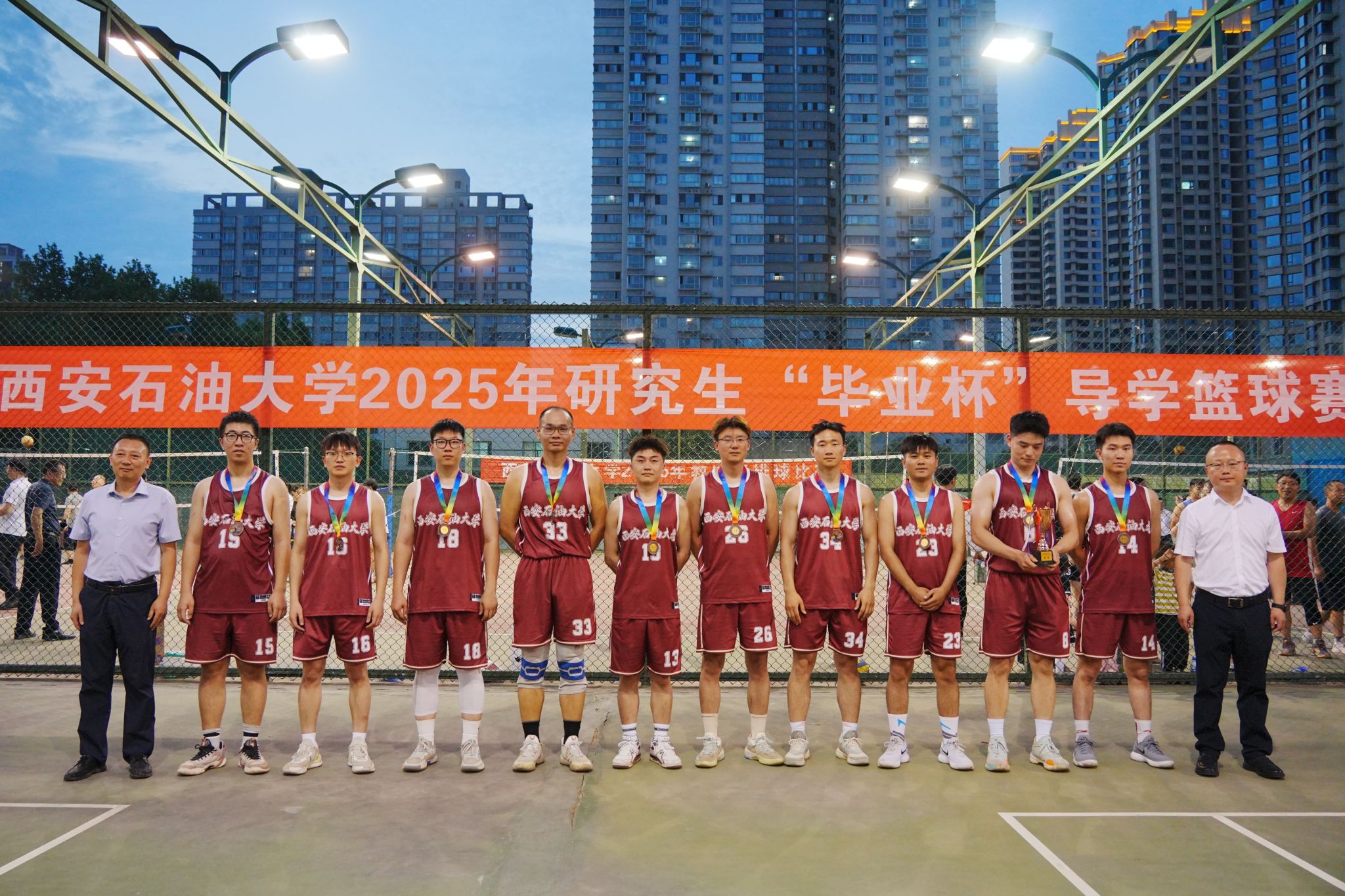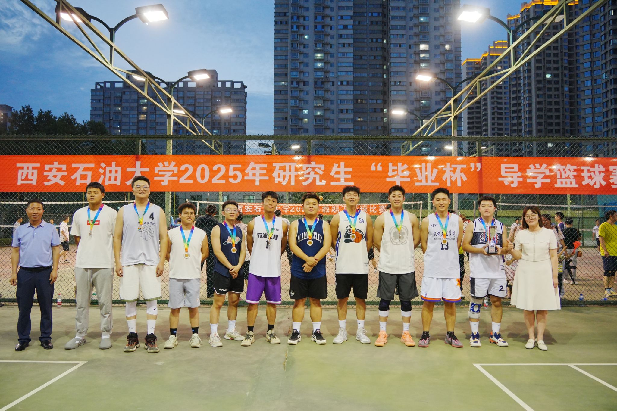 随着全体获奖者与领导嘉宾合影留念,这场承载着导学情谊与青春记忆的篮球盛宴圆满落幕。赛场上的每一次奔跑、每一声呐喊,都将成为毕业生们奔赴人生新赛场的动力源泉。