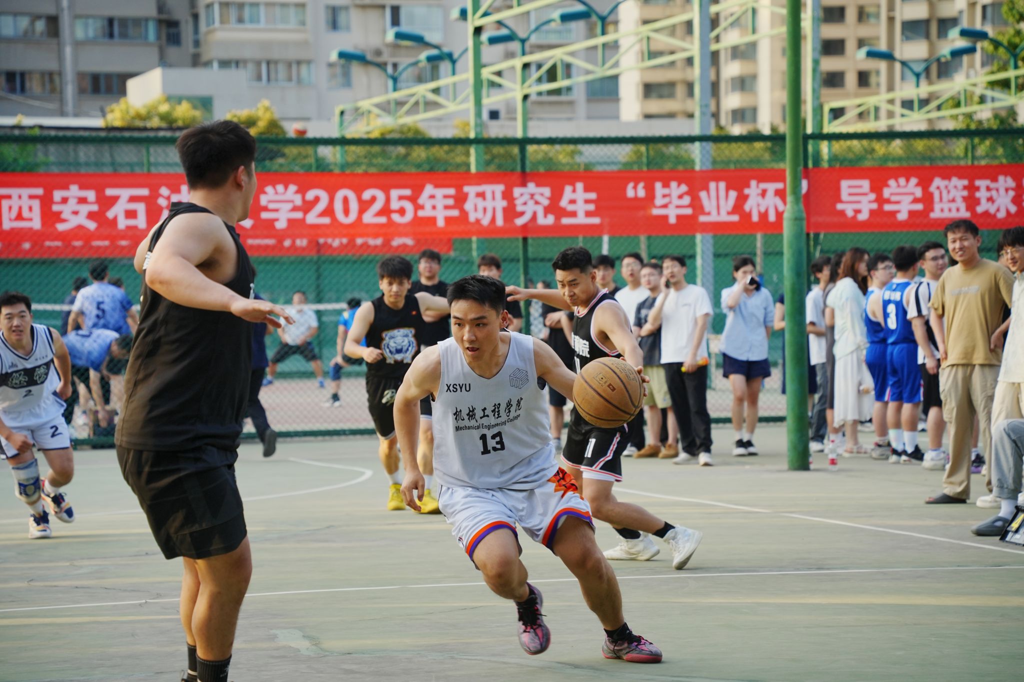 “毕业杯”导学篮球赛为研究生工作部精心策划的毕业季系列活动之一,是深化导学关系、展示研究生综合素质的重要平台,旨在通过体育竞技传递“健康第一、全面发展”的教育理念,激发研究生创新活力,培养团结协作精神,为毕业生留下难忘的校园记忆,激励广大研究生以更饱满的热情投身学术研究与国家建设。
