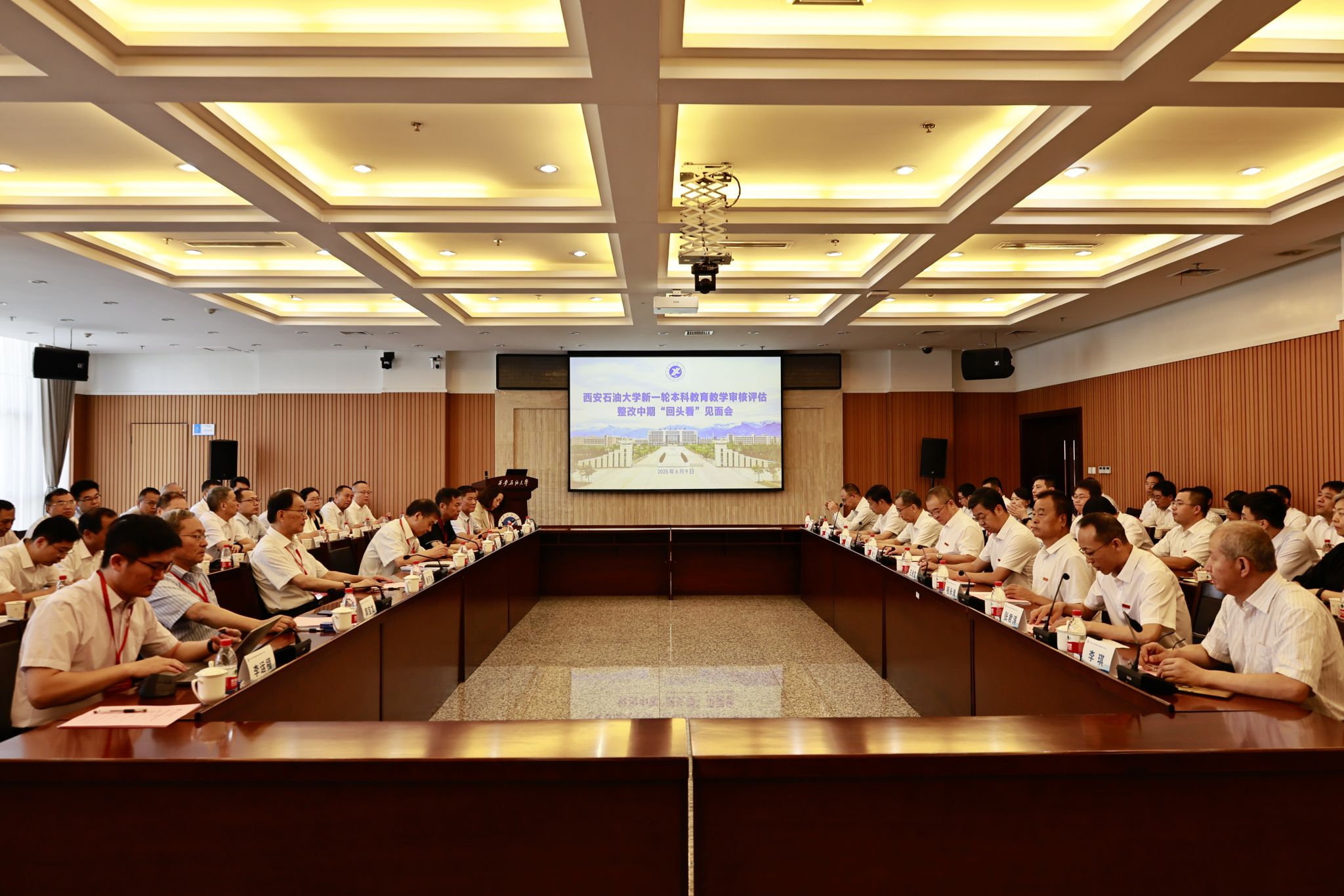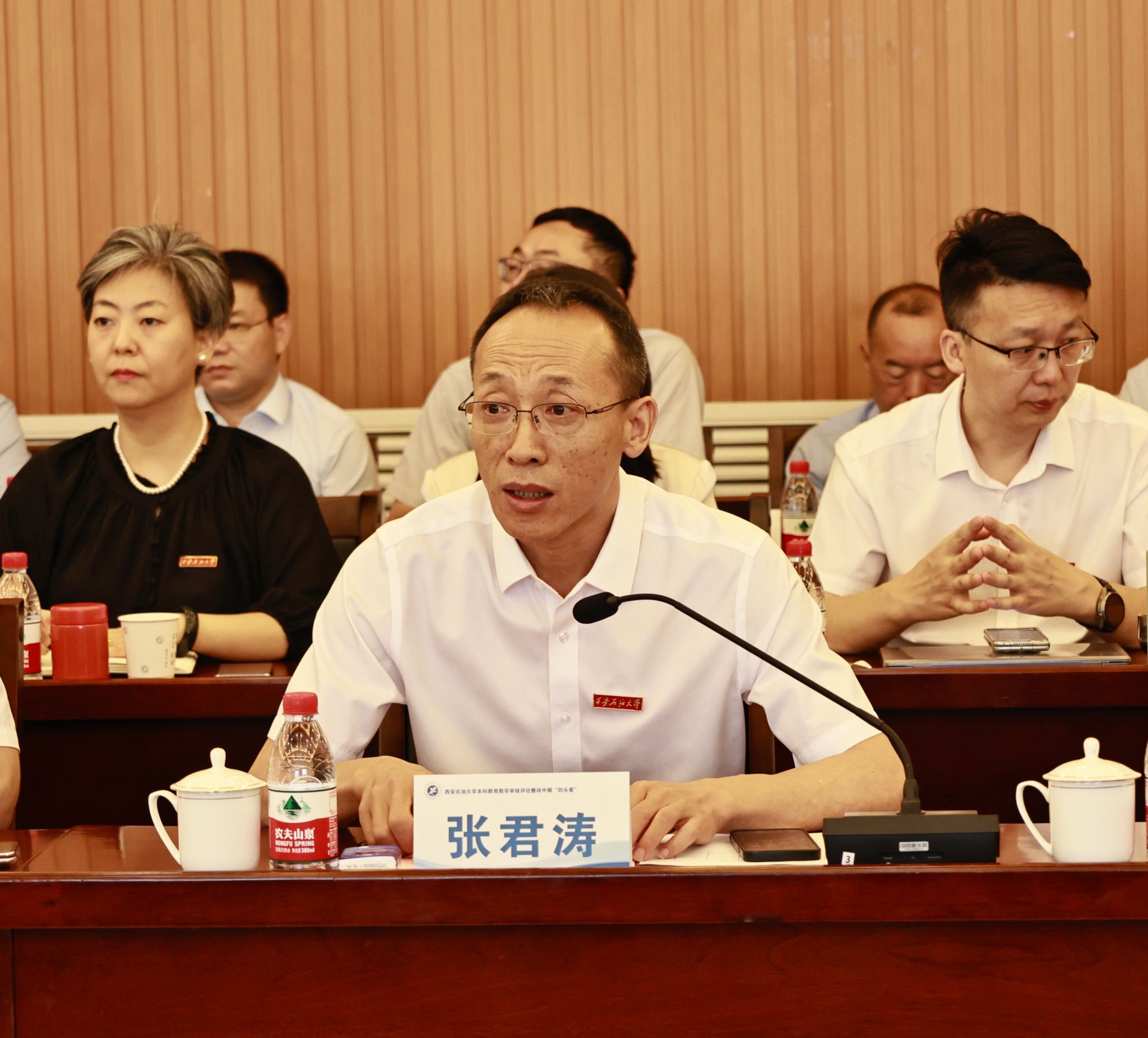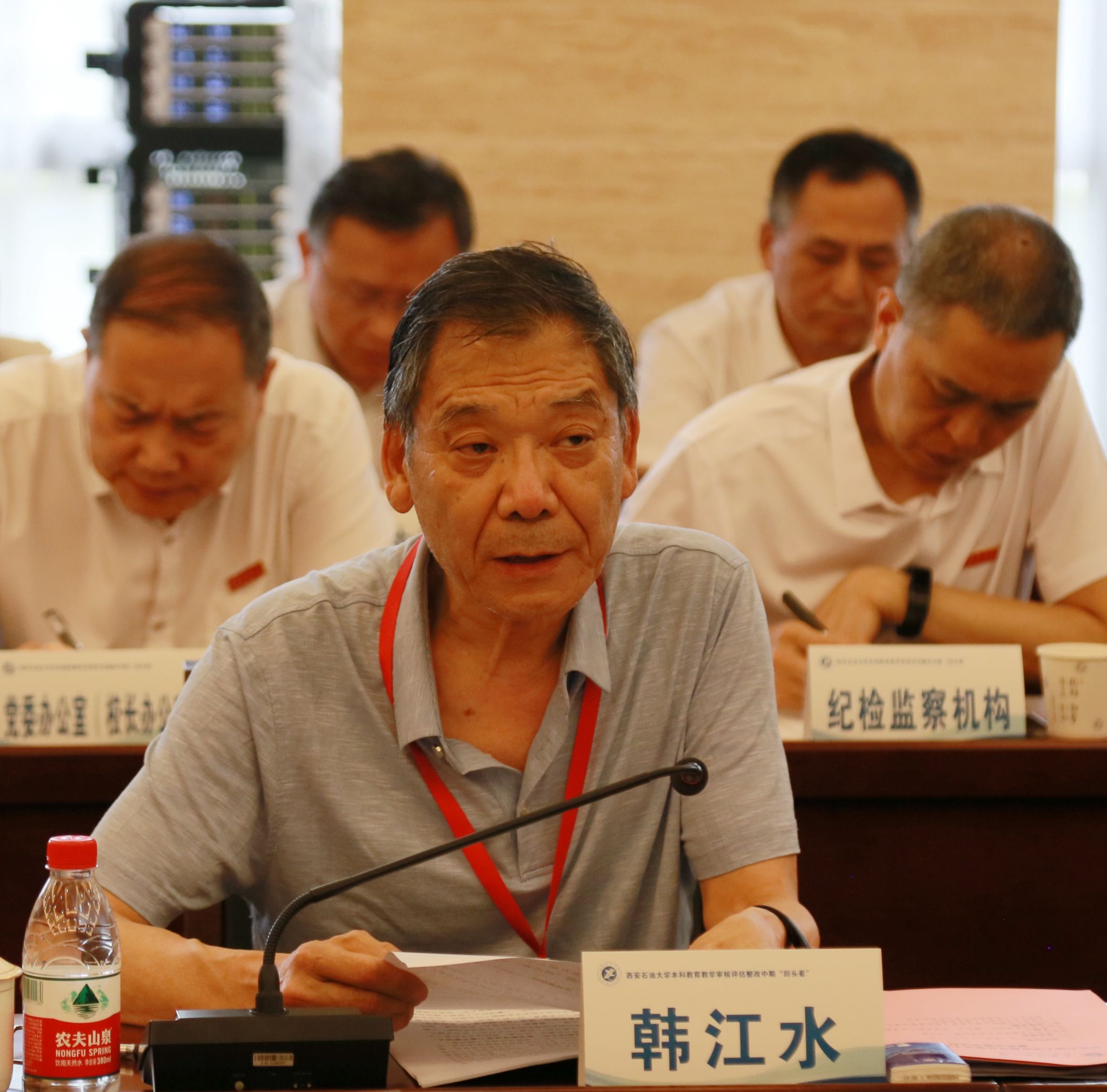 韩江水主持第二阶段会议,介绍了专家组成员,对陕西省审核评估整改“123612”整改工作机制,中期“回头看”工作的目的、意义、任务及要求进行了说明。徐菲从陕西省教育厅审核评估整改工作要求、评估结果应用、本阶段“回头看”相关安排等方面,做了简要介绍。