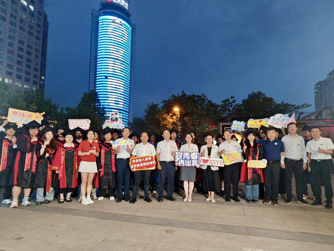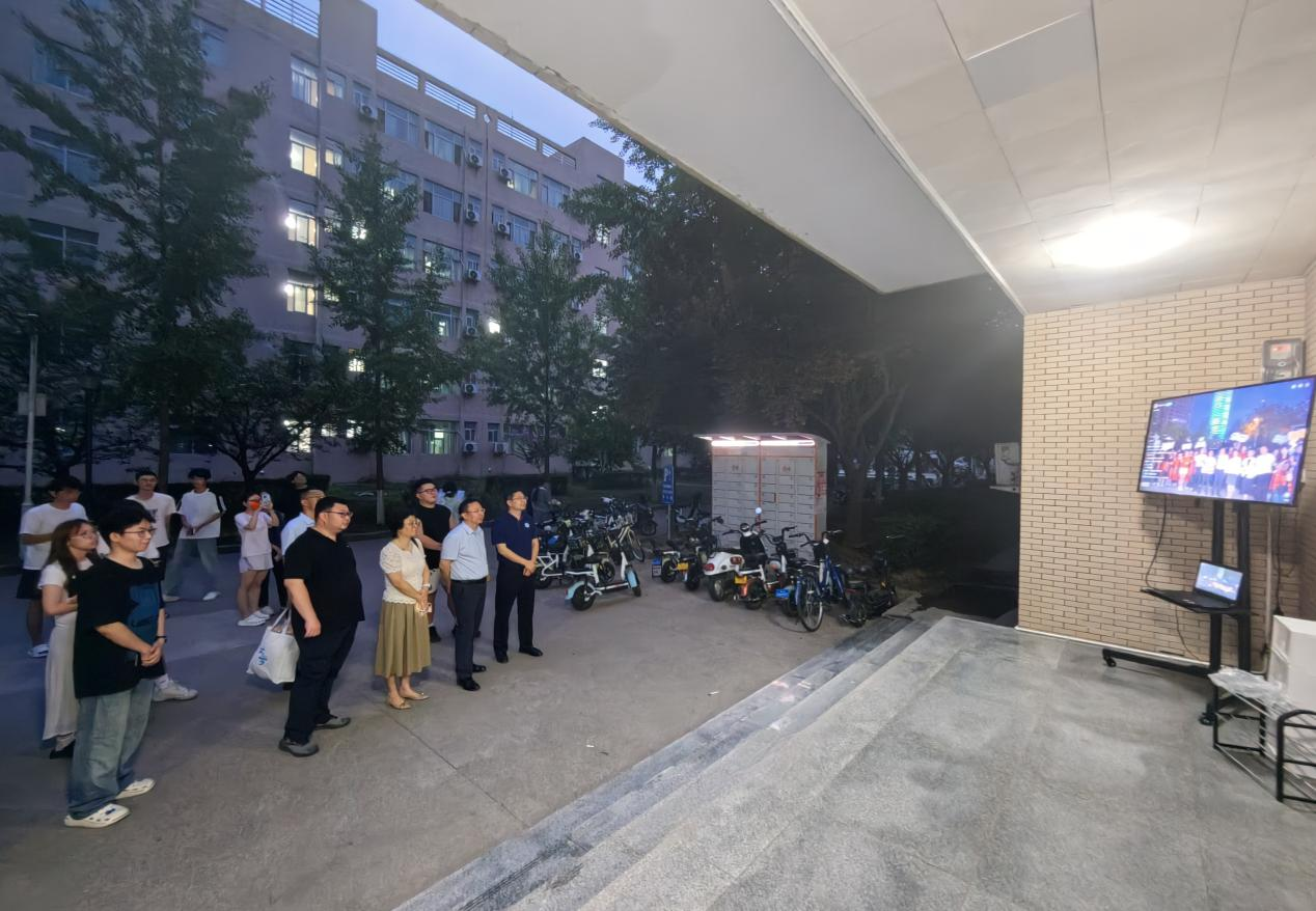 除现场打卡外,党委学生工作部精心组织毕业生们在鄠邑校区各宿舍楼大厅内外,共同见证这份来自城市天际线的深情告白。副校长种宇宏在学工部主要负责人陪同下,逐楼走访各观礼点位,全程陪伴同学们观看直播。
