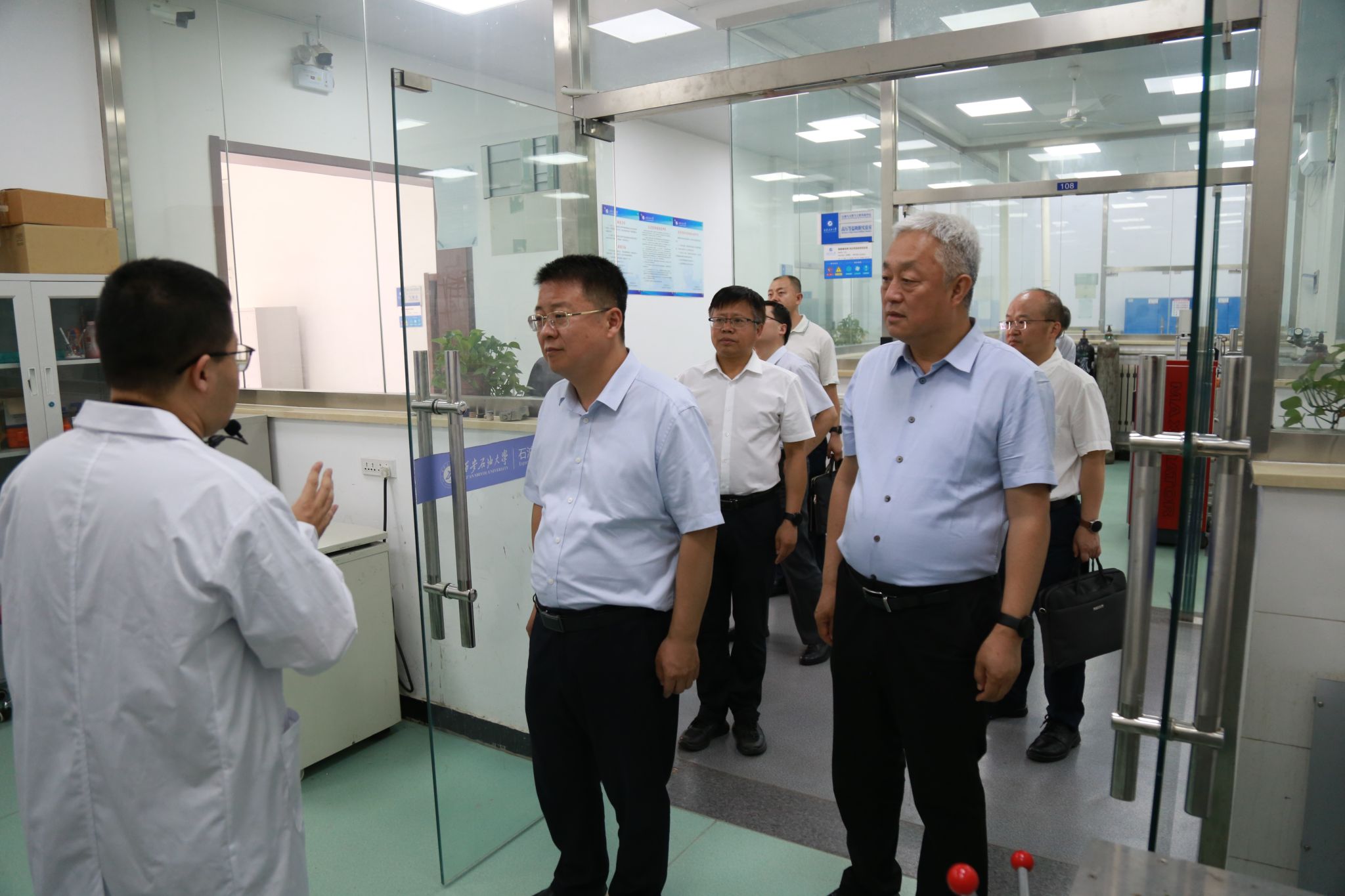 研究室,并与实验现场科技工作者进行了交流。