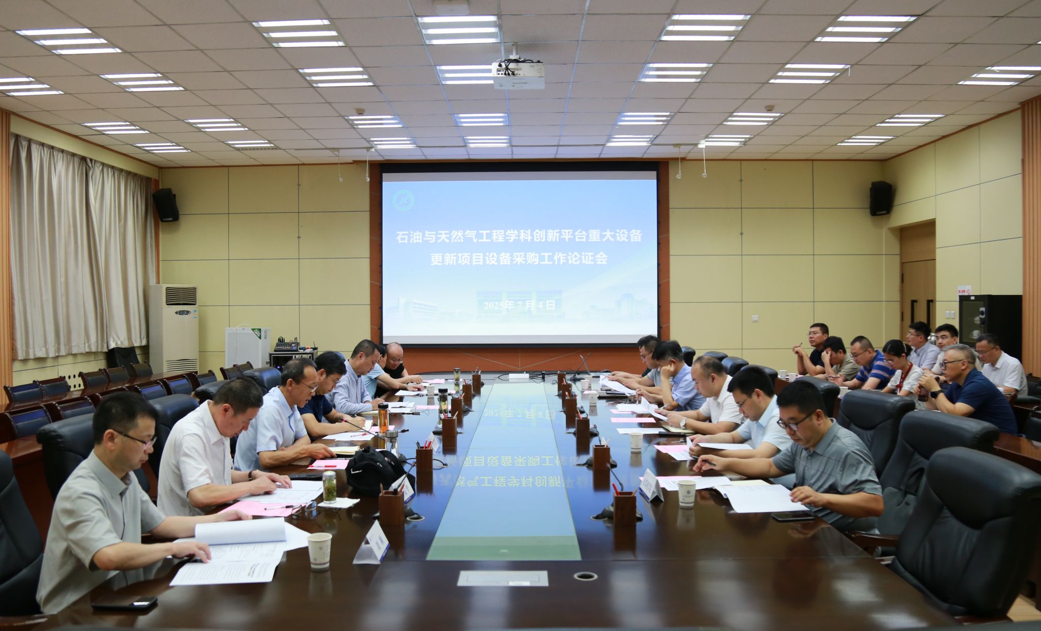 在雁塔校区第一会议室召开石油与天然气工程学科创新平台重大设备更新项目设备采购工作论证会。校长王进富、副校长张荣军出席,会议由副校长张君涛主持。