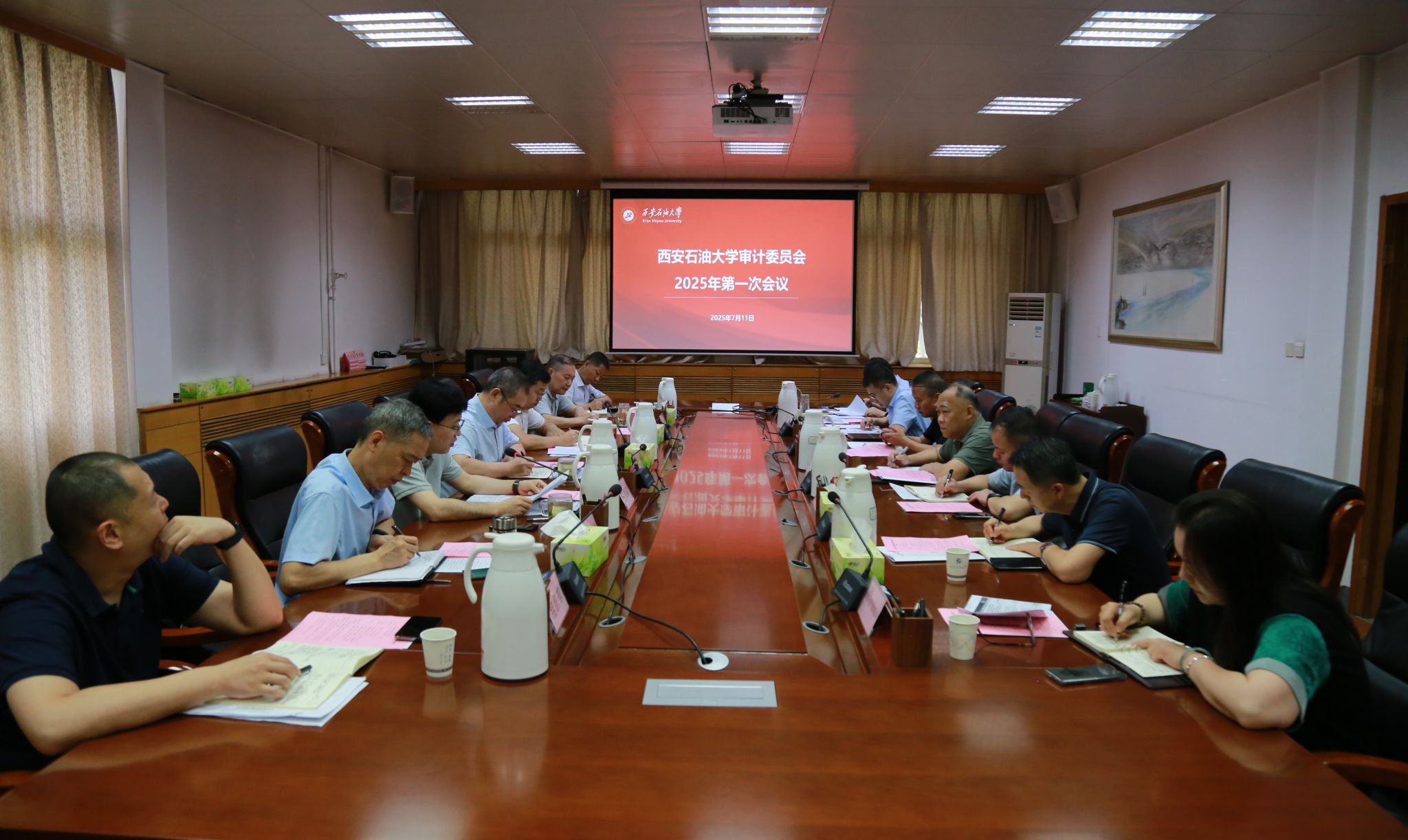 校审计委员会委员单位党委办公室(校长办公室)、纪检监察机构、巡察工作办公室、组织部、工会、人事处、财务处、审计处、国有资产处,审计整改责任单位后勤处、西安石大资产经营有限公司主要负责人参加了会议。