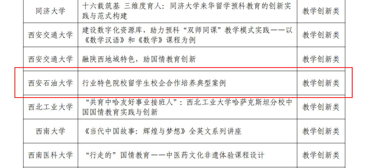 报送的《行业特色院校留学生校企合作培养典型案例》成功入选留学生教学创新类案例。