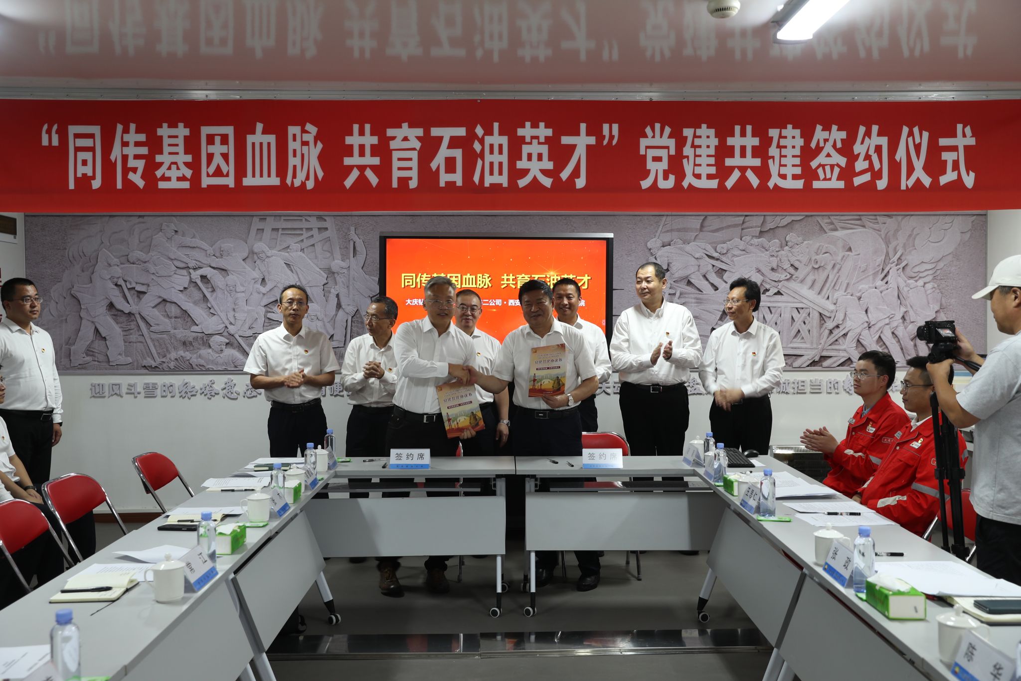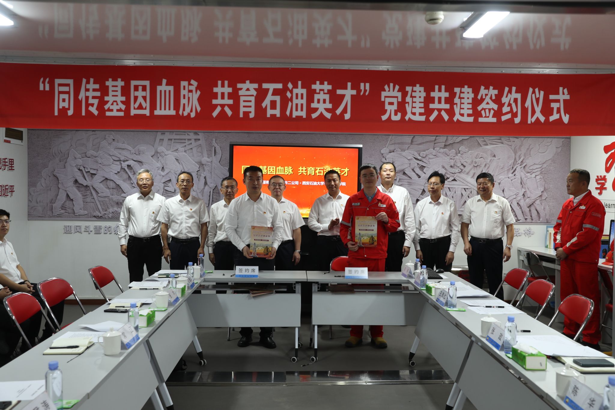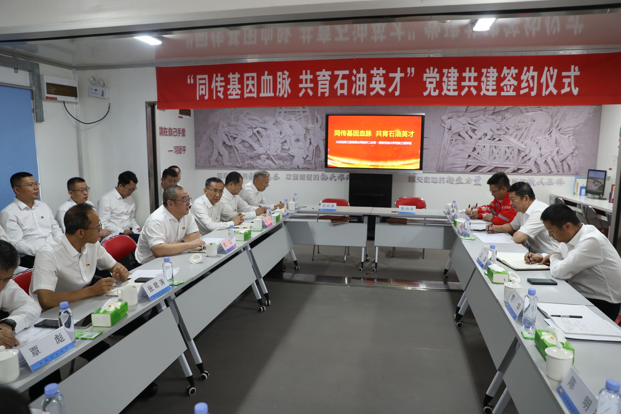 党委与钻井二公司党委书记王思仁签订《党建共建协议书》;石油工程德州扑克