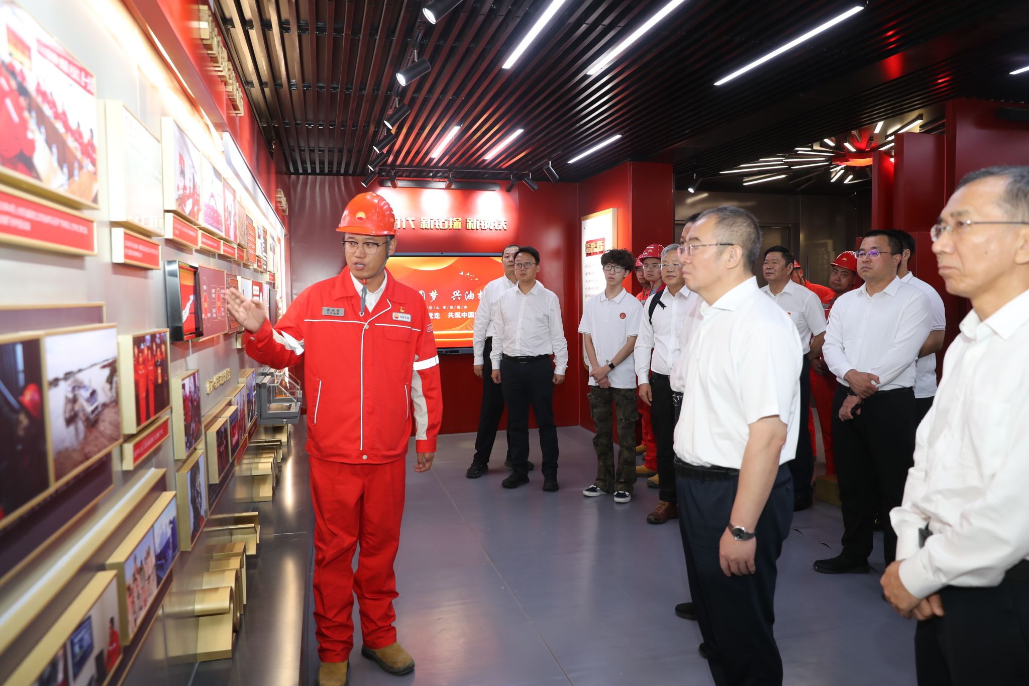 会前,与会人员怀着崇敬之心走进1205钻井队队史展览馆。在一幅幅承载记忆的珍贵影像、一件件镌刻岁月的历史实物前,大家驻足沉思,循着时光的足迹,深刻感悟这支“铁人钻井队”的英雄集体在波澜壮阔的时代画卷中镌刻下的不朽传奇与赤胆忠诚。从“峥嵘岁月、书写忠诚”的艰辛创业,到“为国分忧、挺起脊梁”的担当奉献,再到“牢记嘱托、红色更艳”的薪火相传,1205队用热血与汗水生动诠释了中华民族在不同历史时期攻坚克难、为国奉献的伟大精神品格,大家深切体悟到,作为“新时代、新钻探、新钢铁”的卓越标杆,1205钻井队所铸就的“铁心向党铸忠诚、铁肩扛旗担使命、铁志奋进创一流、铁核聚变强内功、铁骨钢筋筑防线”的精神,不仅是石油工人“工业学大庆”优良传统的时代升华,更是新时代共产党人精神谱系的鲜活注脚,深刻彰显了追求卓越的时代担当。