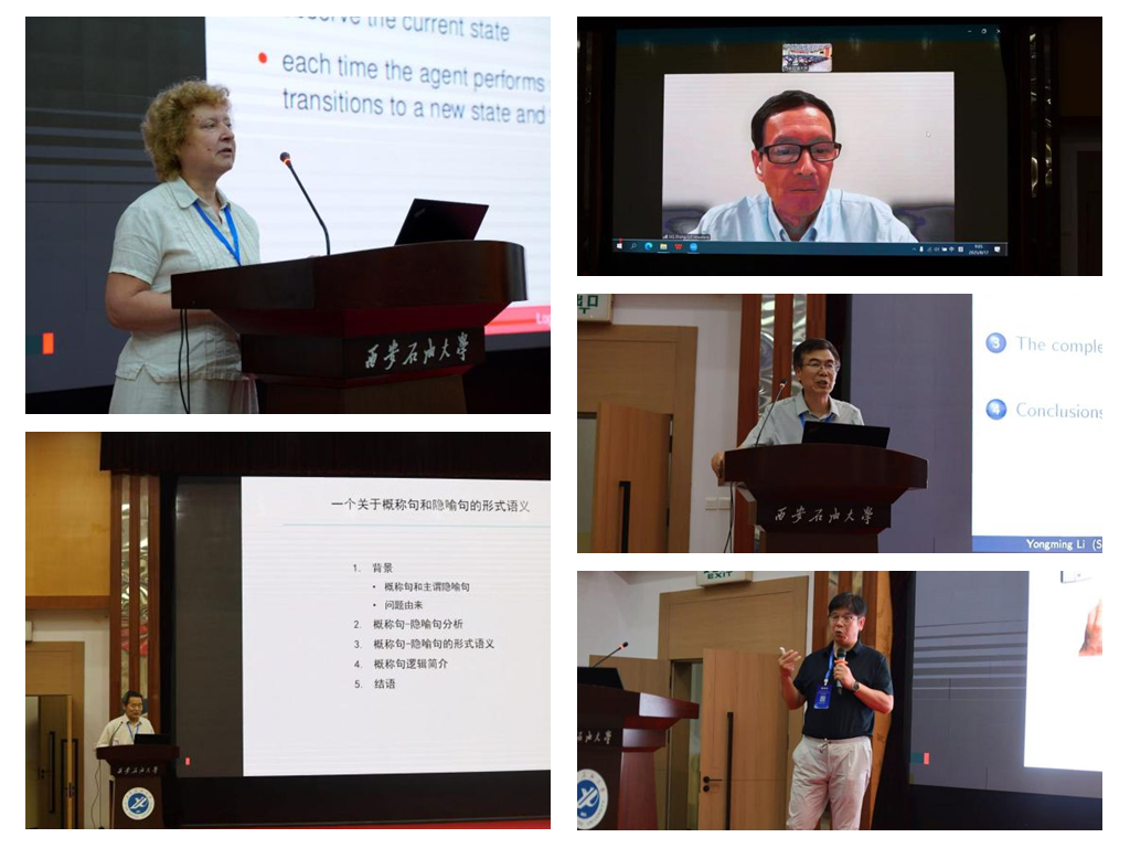 在主旨报告环节,荷兰与佛兰德斯开放大学的Natasha Alechina教授、山西大学周北海教授、德克萨斯大学休斯顿分校张国强教授、陕西师范大学李永明教授、北京大学詹乃军教授分别作了《强化学习的逻辑》《泛型句与隐喻句的形式语义》《集成逻辑:时空推理的统一框架》《可能性时序逻辑:可判定性与完全公理化》《将Hoare逻辑扩展至混合系统》的精彩报告,并与参会代表进行了热烈的讨论。