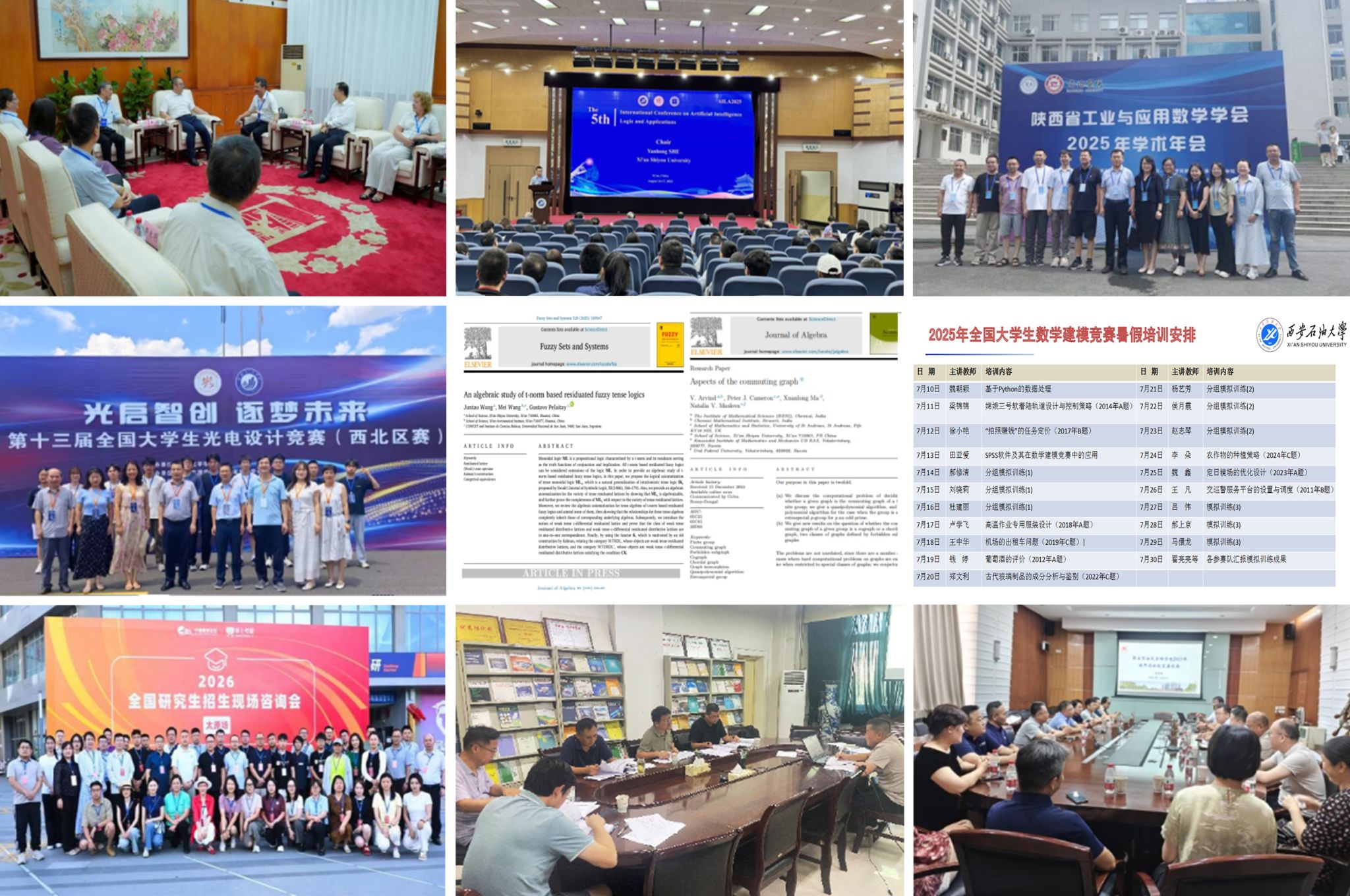 代数及其应用团队在Journal of Algebra、Fuzzy Sets and System等学界顶刊发表论文。四是光电竞赛创佳绩。在第十三届全国光电设计竞赛获西北区赛一等奖2项、优秀组织奖。五是建模培训筑根基,组织21位教师、120余名本科生开展全国大学生数学、物理学科建模竞赛培训。六是精准对接育人才,开展2025版本科生培养方案修订工作,组织教师赴多地开展研究生招生宣传。