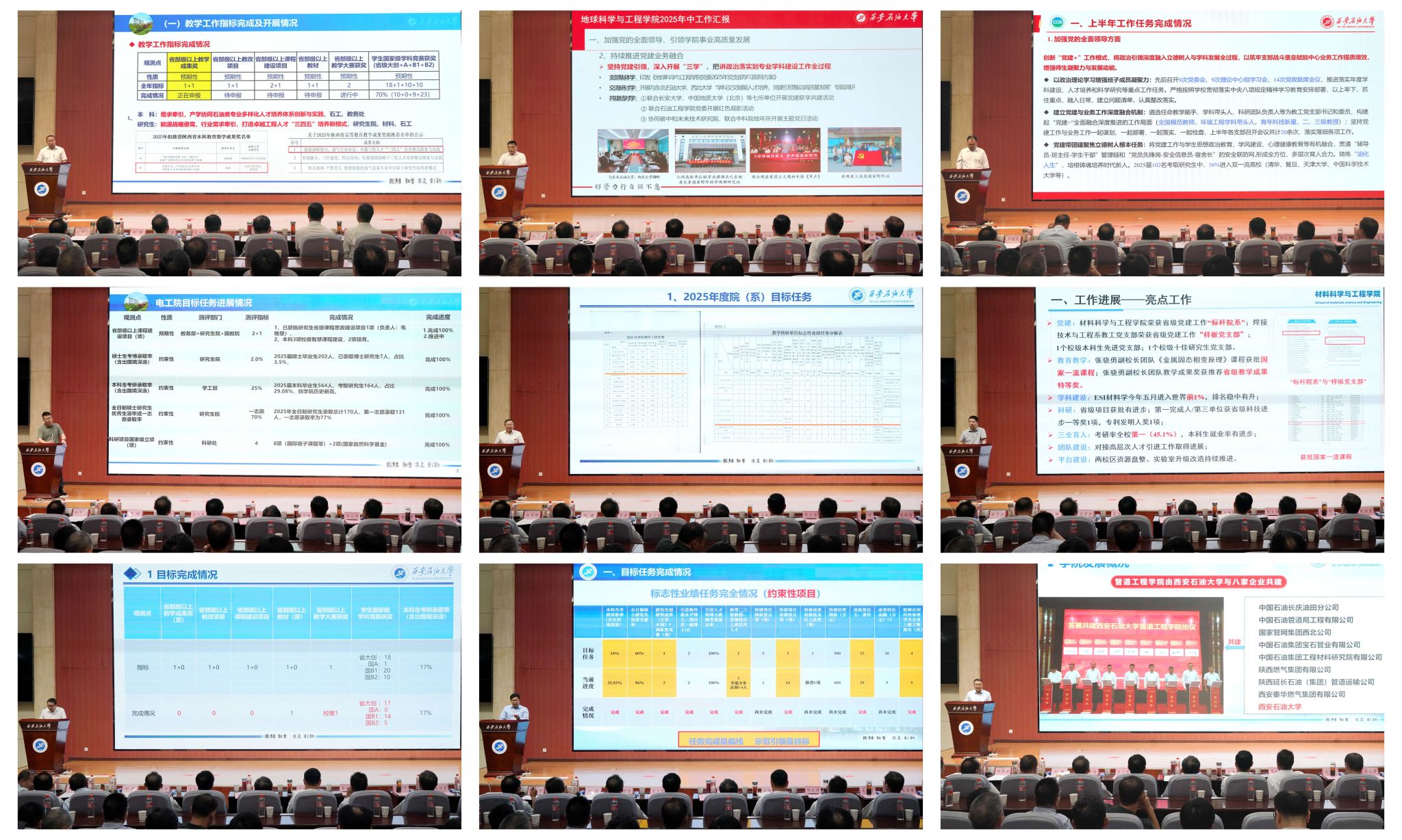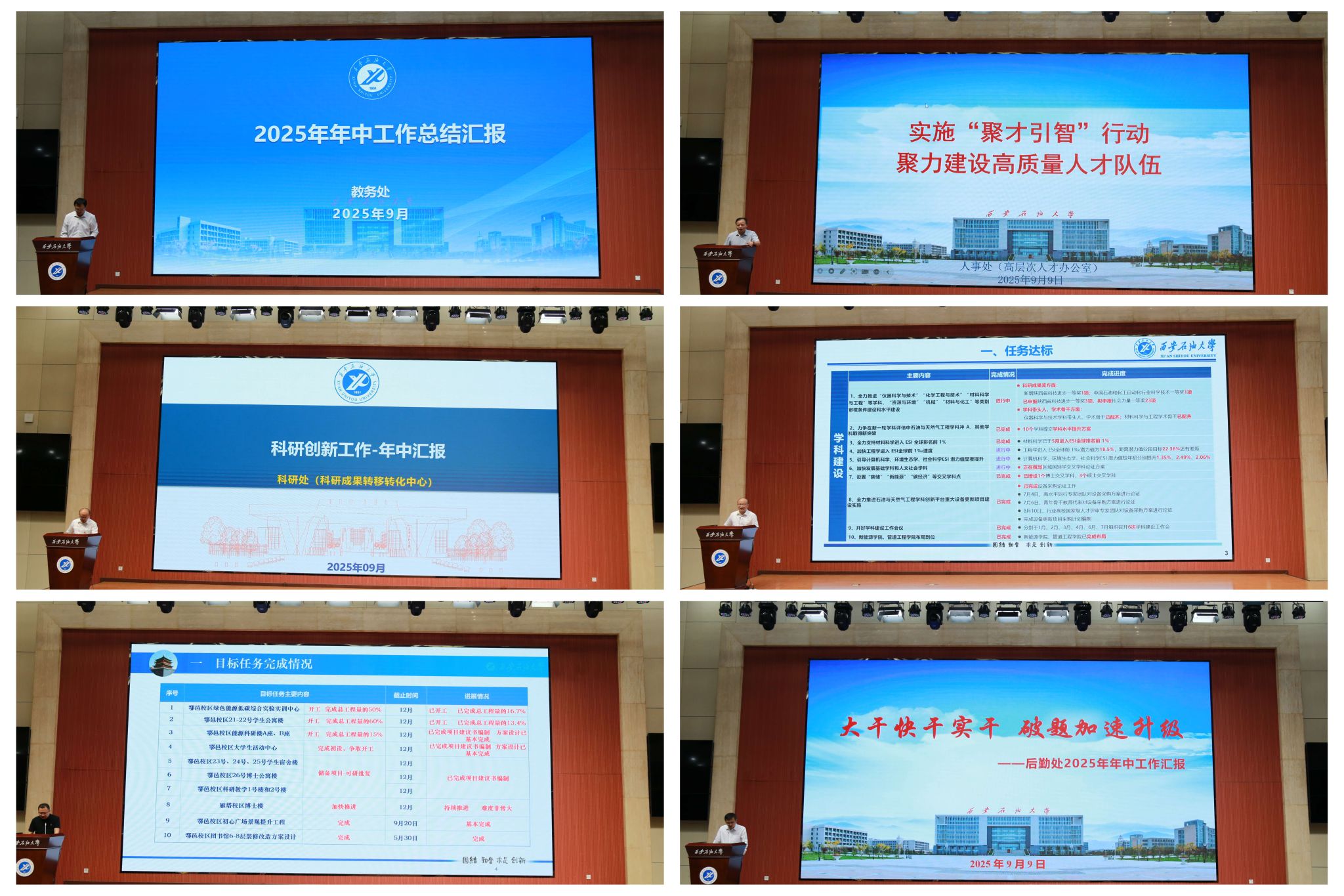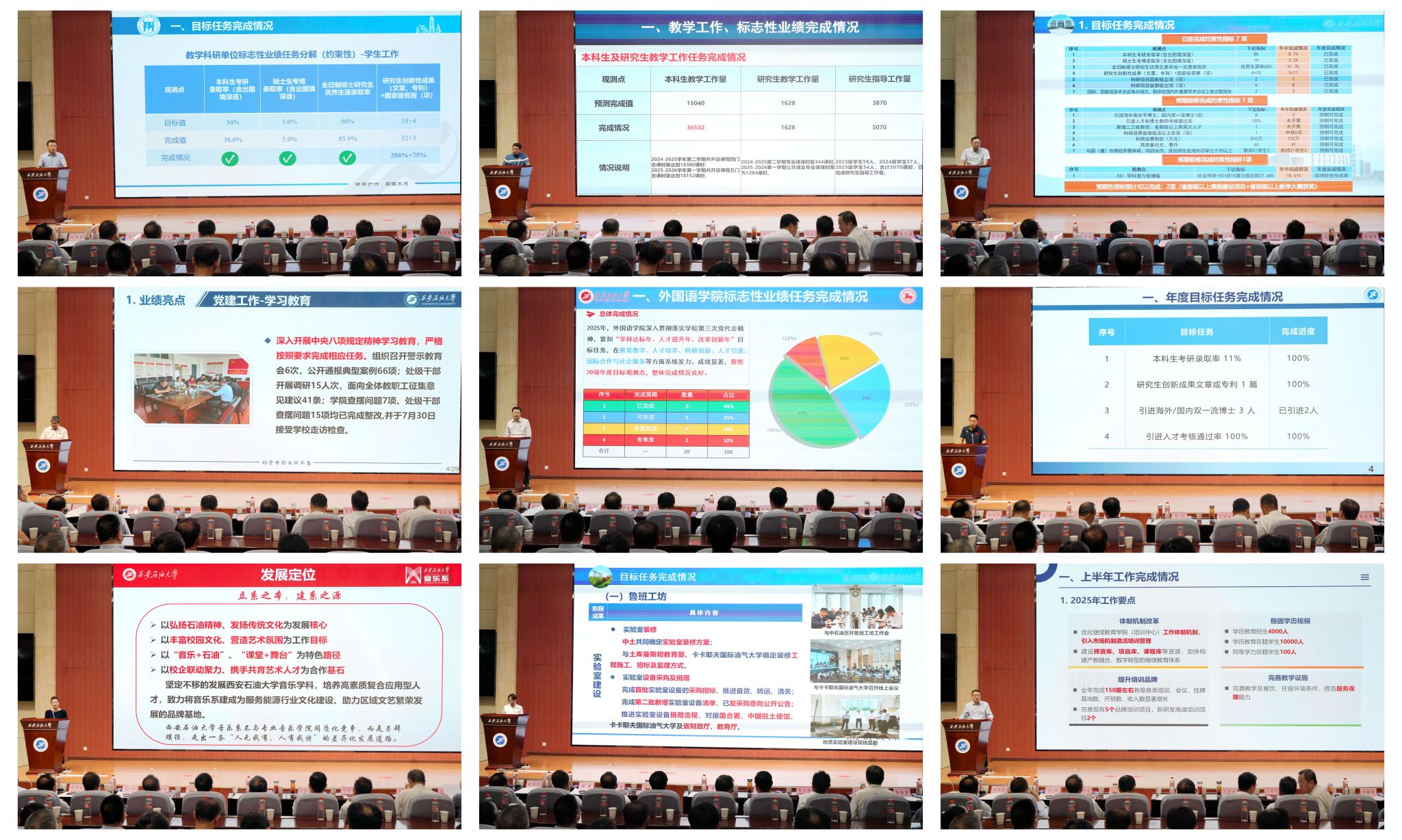 在发展过程中存在的短板与不足,以及当前高等教育领域发展变革带来的机遇与挑战。他强调,下半年是完成全年目标任务的关键期,全校上下必须坚持目标导向和问题导向:要以开好“人才工作会、年中工作会、‘十五五’规划务虚会”三个会为依托,赋能“三个年”建设,持续深化教育科技人才一体改革,奋力实现党代会确立的三大目标;要以“完善三全育人体系、优化育人品牌活动、强化有组织就业”三项措施全面提升育人质量;要以推进中亚合作、国际科研合作、中外联合办学三项重点,形成开放办学新优势;要加快落实基础教育实质性合作、群众急难愁盼需求、“一老一小”保障等三项民生工作,塑造幸福西石大新形象。同时要举全校之力做好五方共建、群像揭幕、问题整改等重点工作。